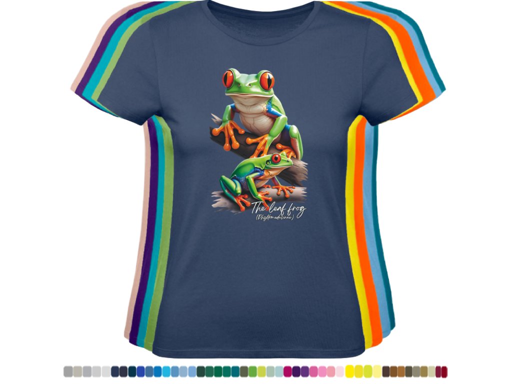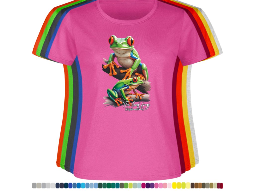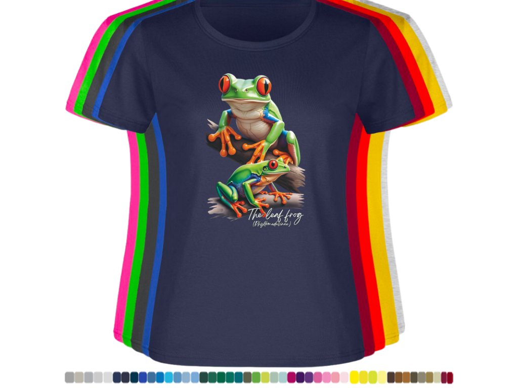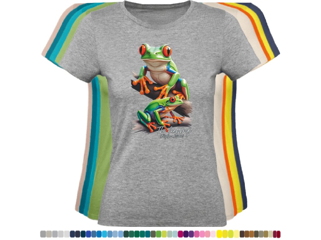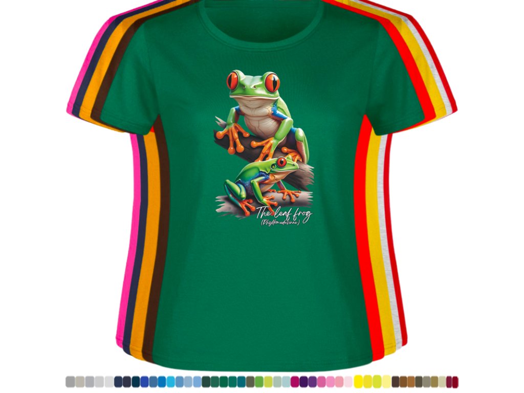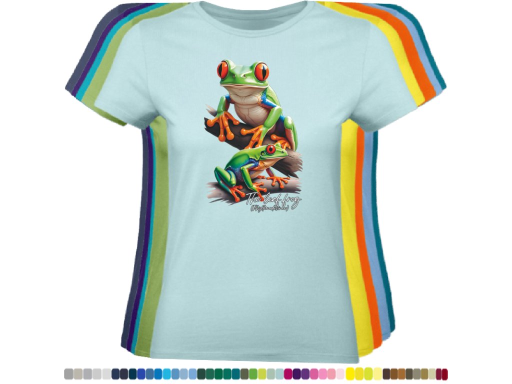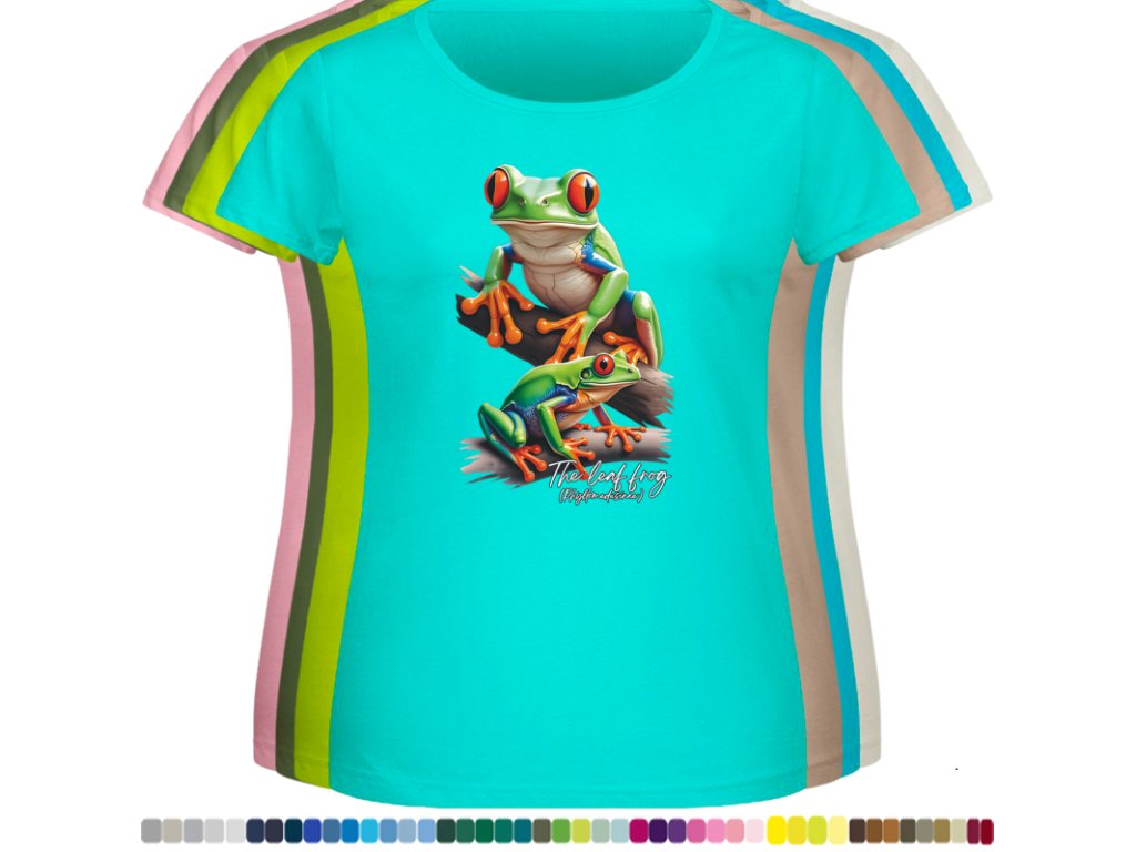 DÁMSKÉ LEVNÉ BAVLNĚNÉ TRIČKO S DIGITÁLNÍM POTISKEM ŽABEK LISTOVNIC