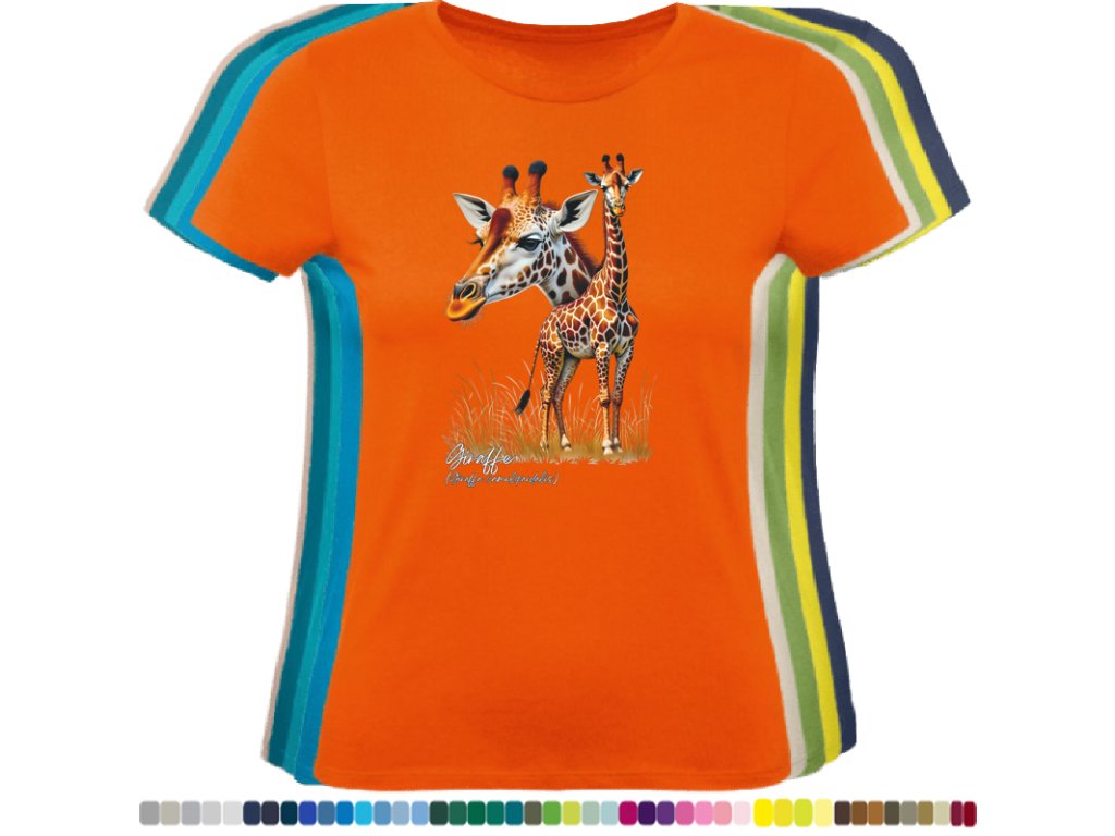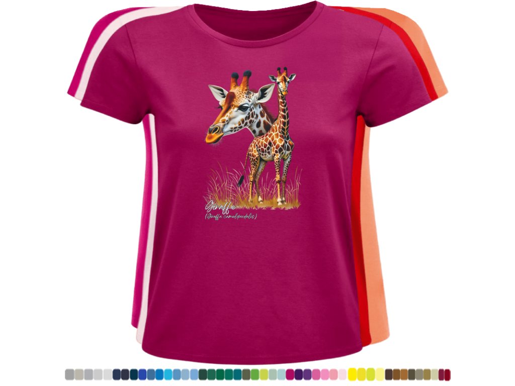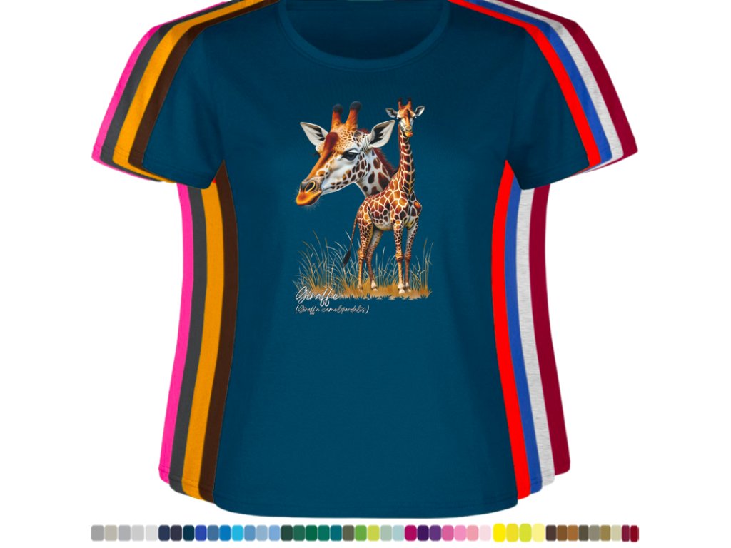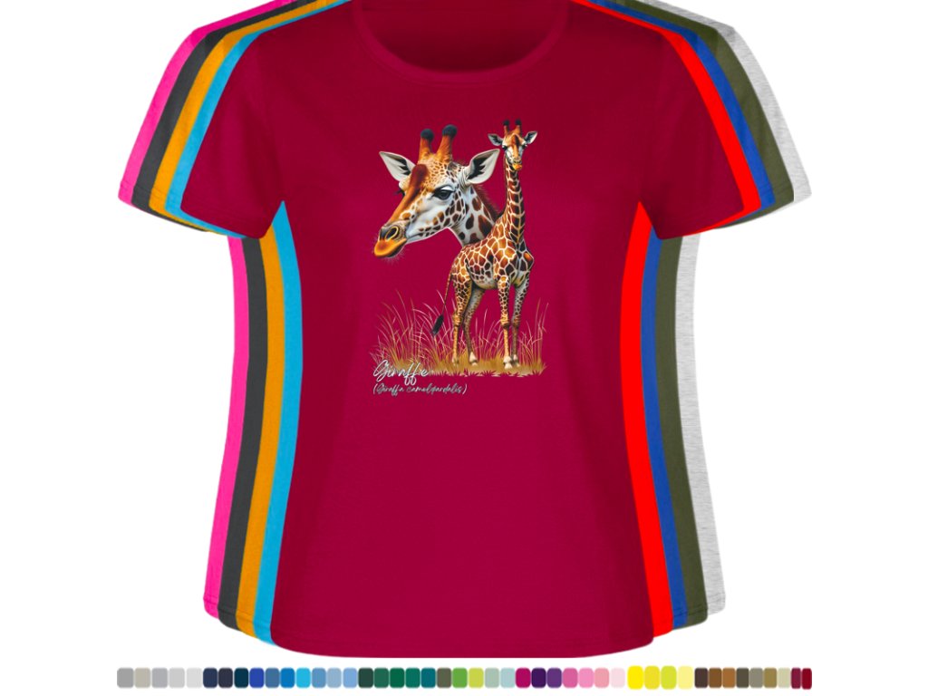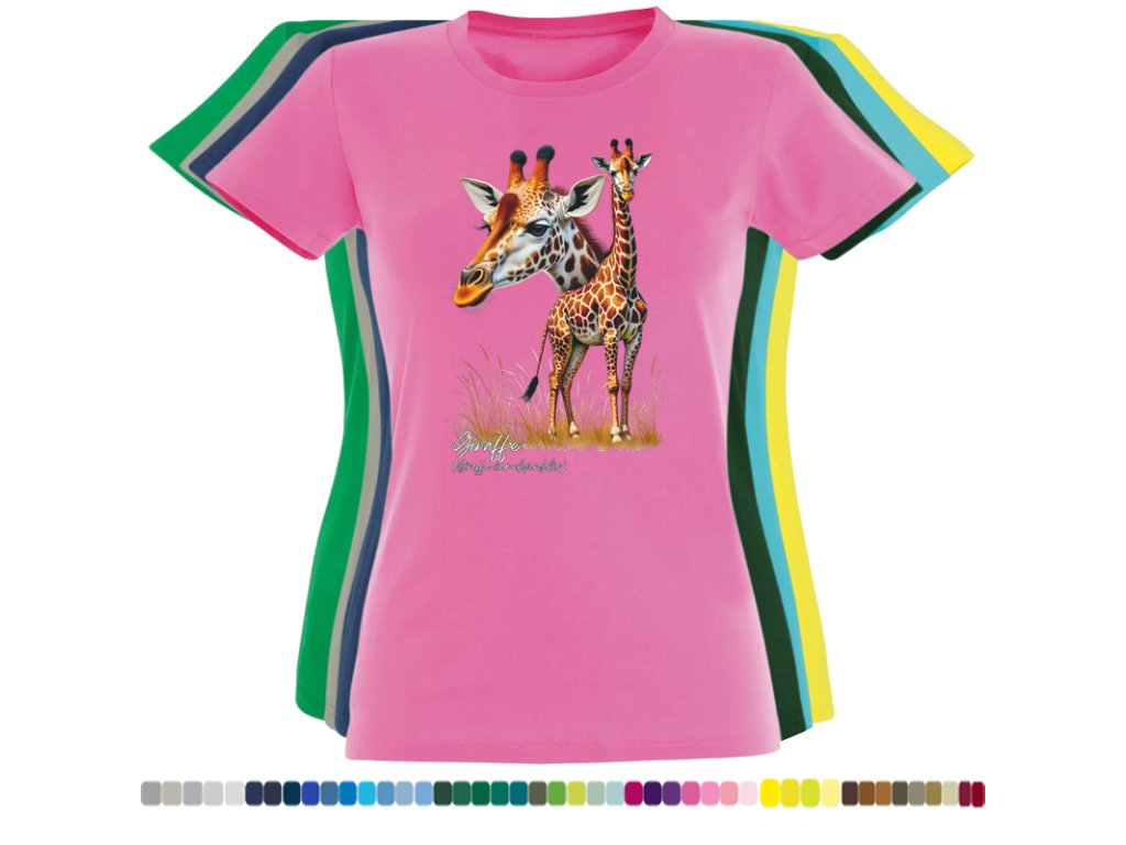 DÁMSKÉ LEVNÉ BAVLNĚNÉ TRIČKO S DIGITÁLNÍM POTISKEM ŽIRAFY