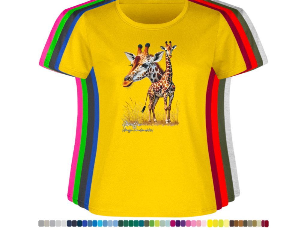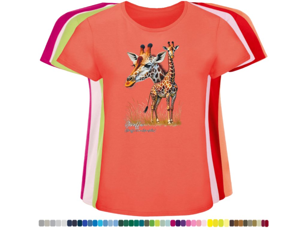 Dámské levné bavlněné tričko s digitálním potiskem Žirafy