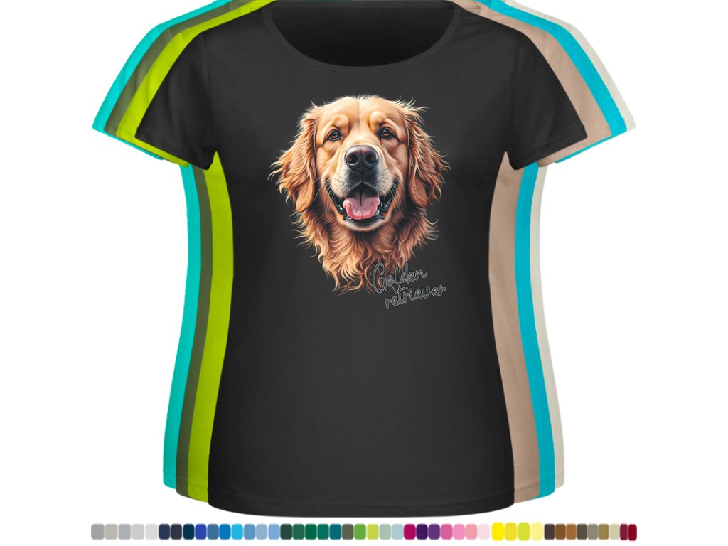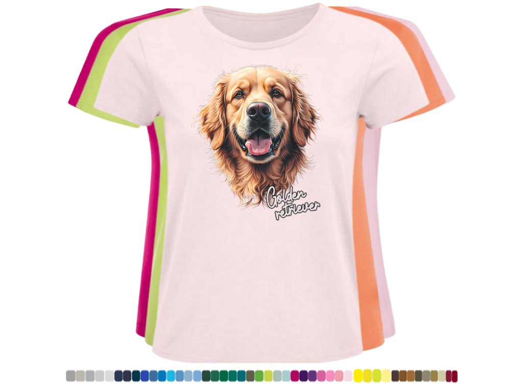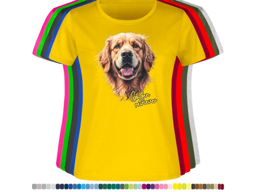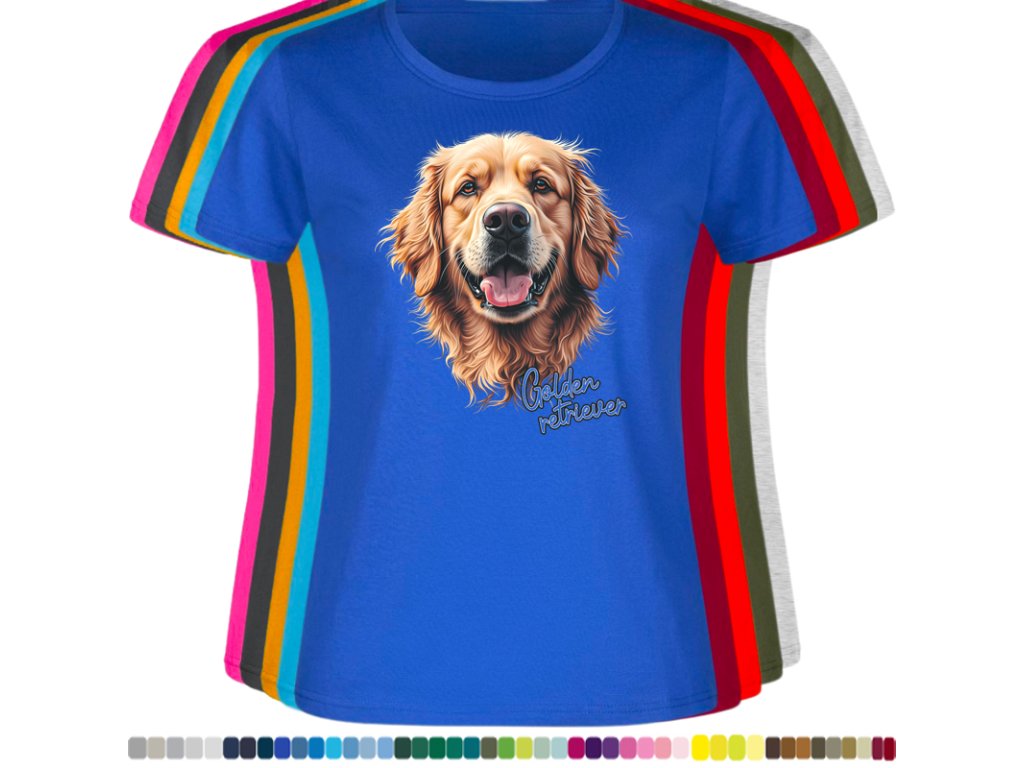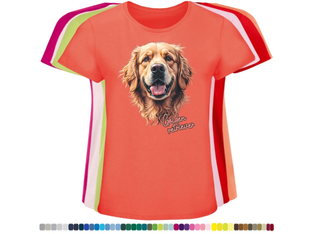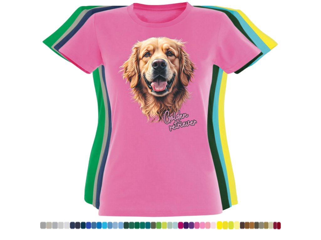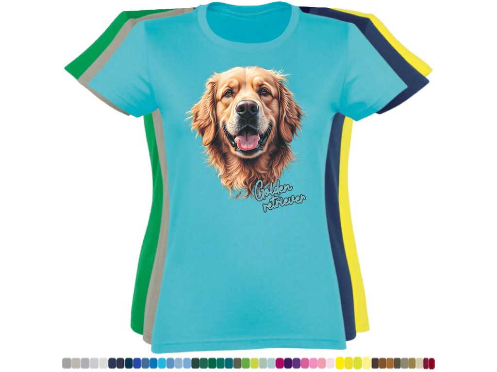 DÁMSKÉ LEVNÉ BAVLNĚNÉ TRIČKO S DIGITÁLNÍM POTISKEM PSA ZLATÝ RETRÍVR