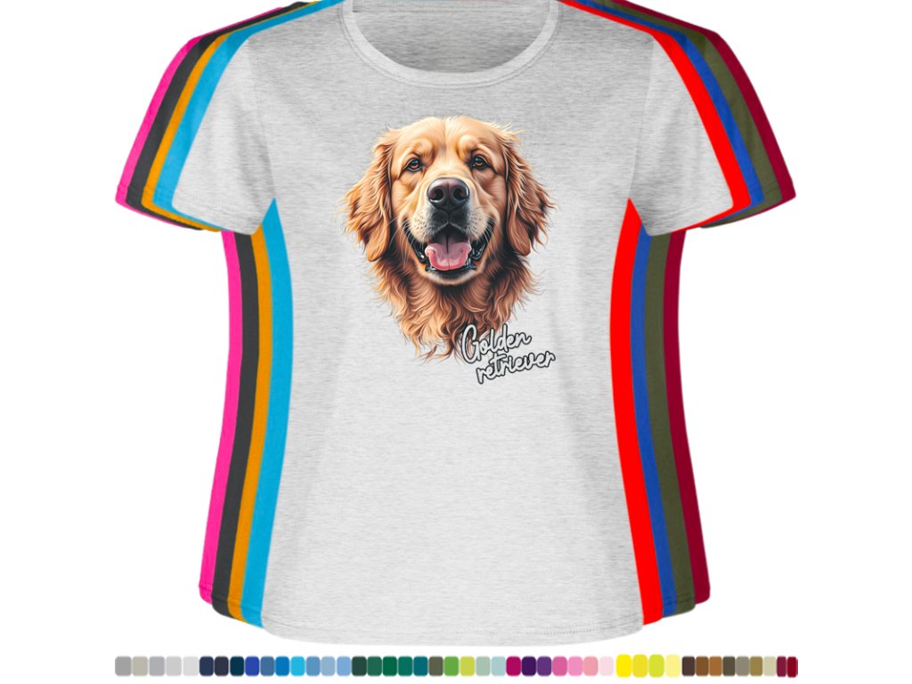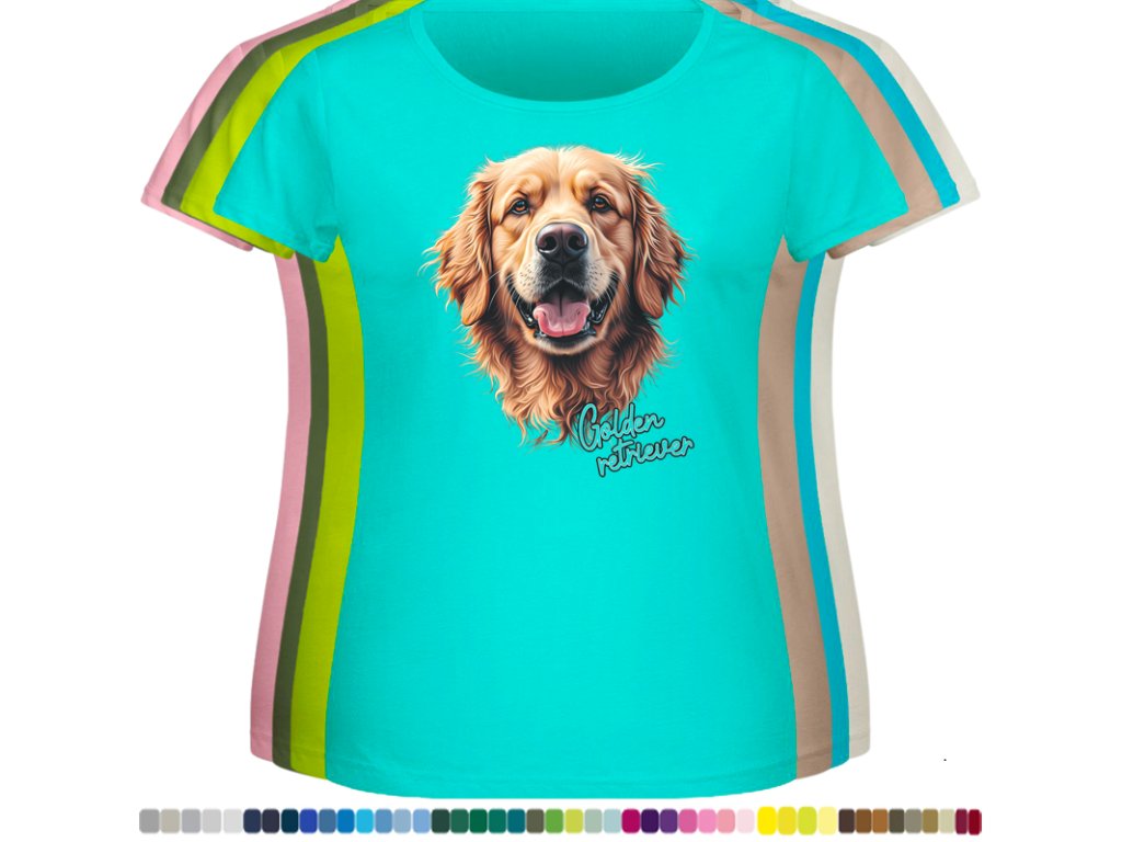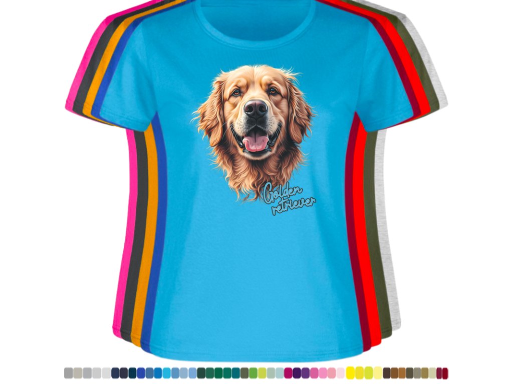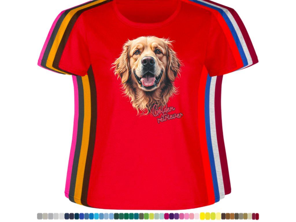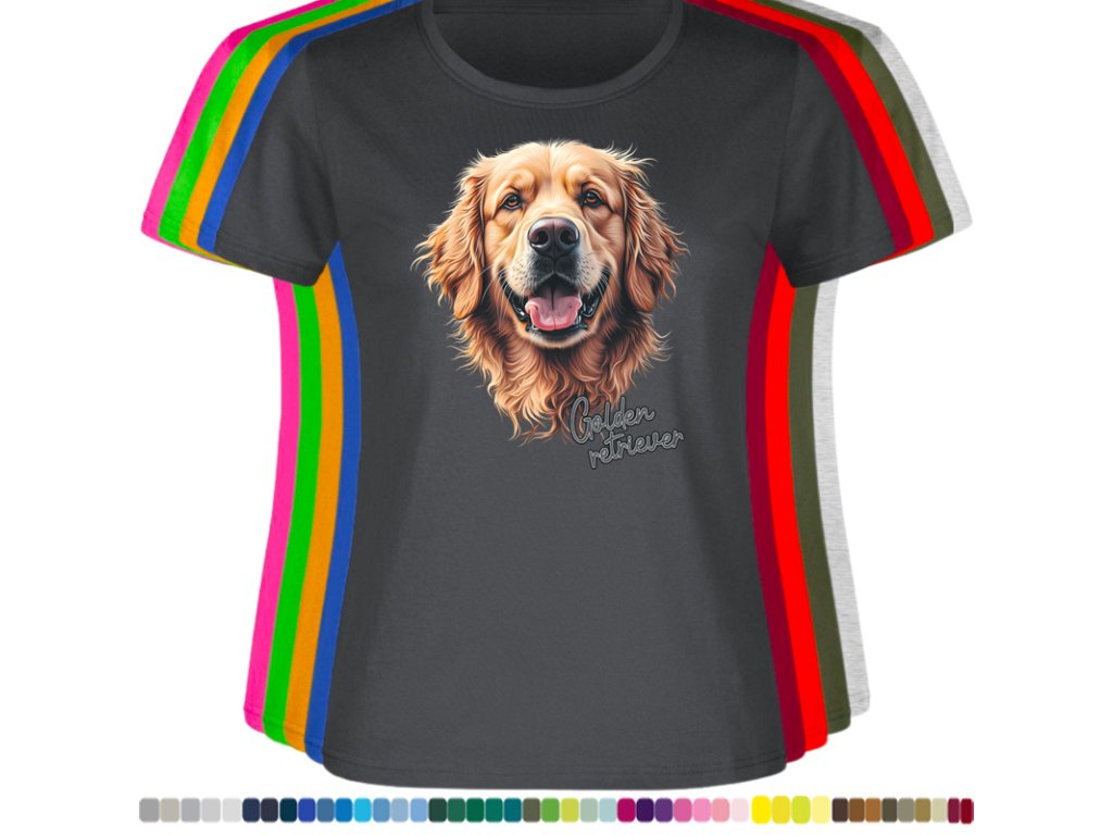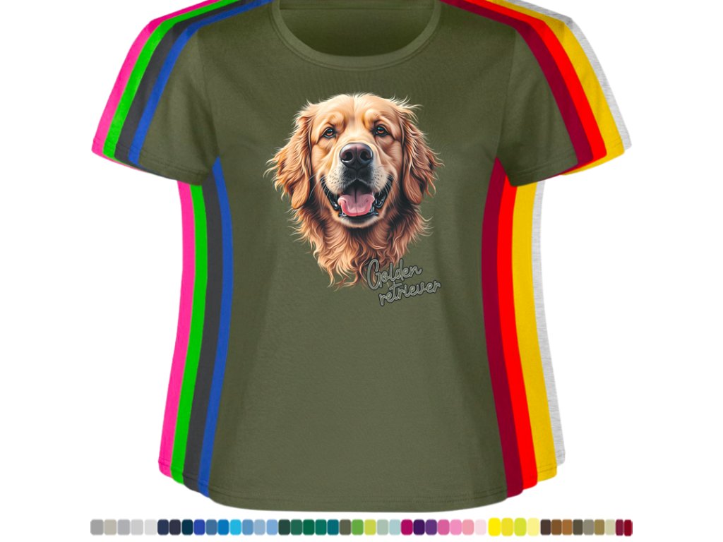 DÁMSKÉ LEVNÉ BAVLNĚNÉ TRIČKO S DIGITÁLNÍM POTISKEM PSA ZLATÝ RETRÍVR