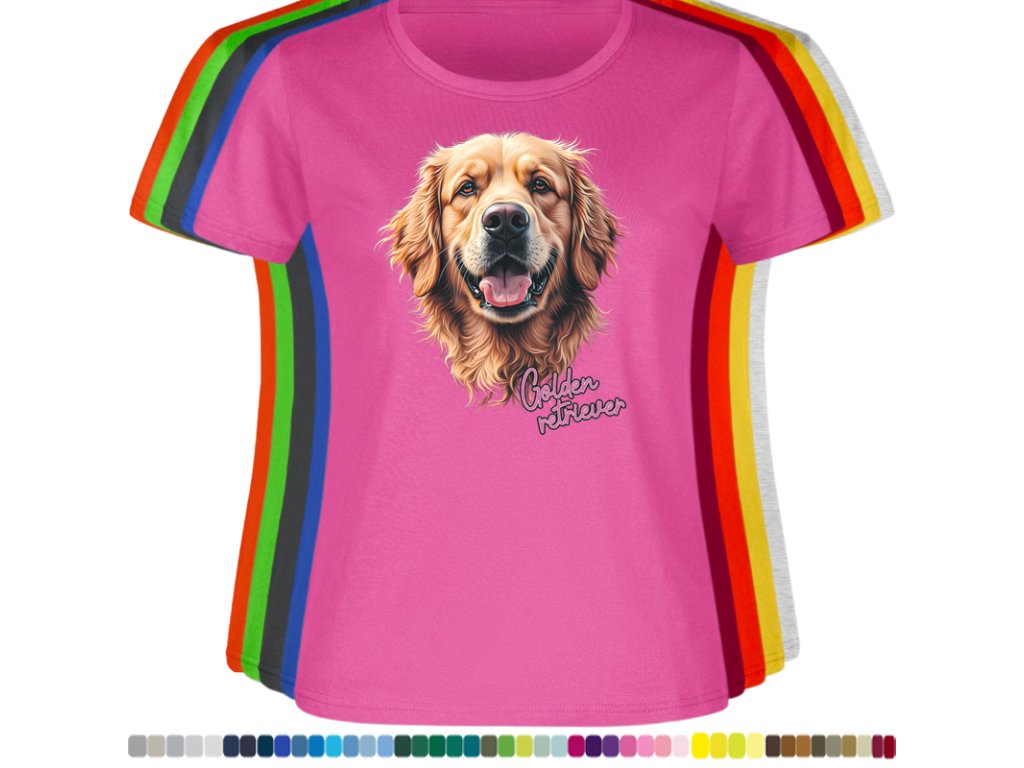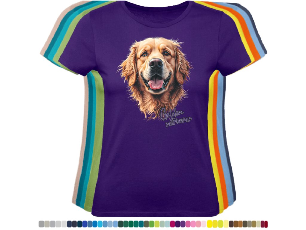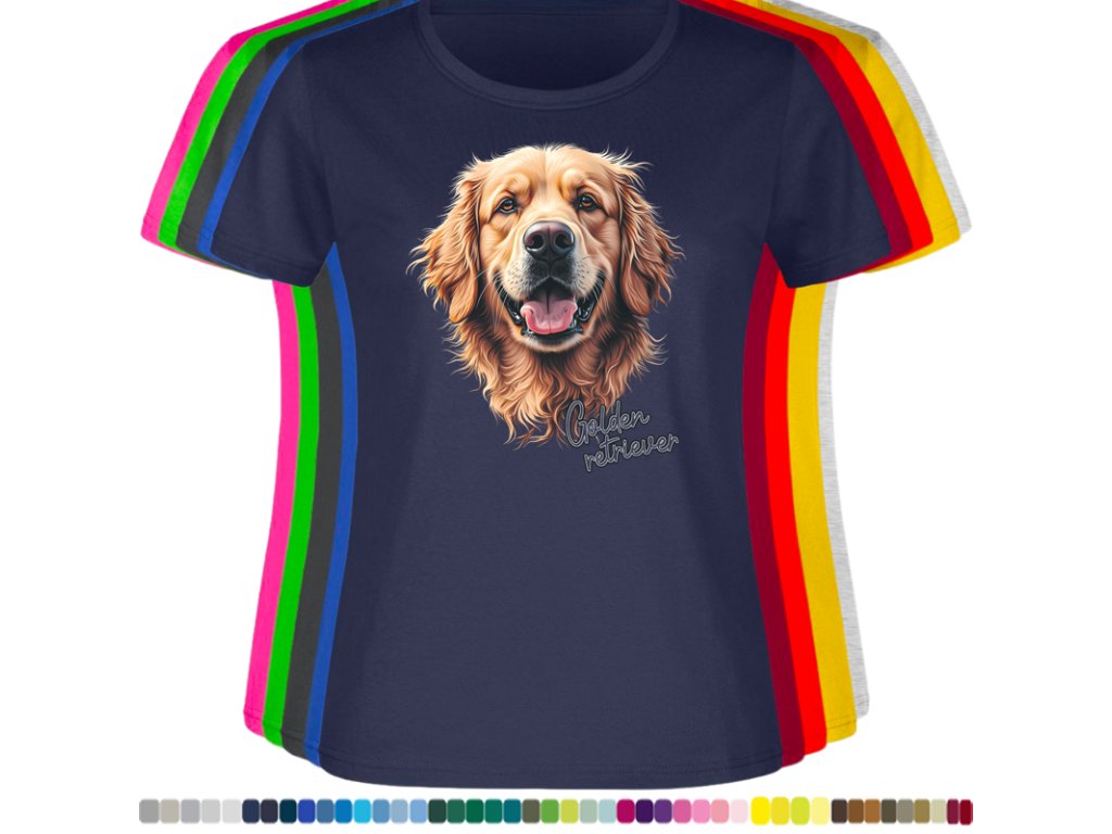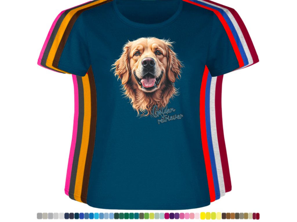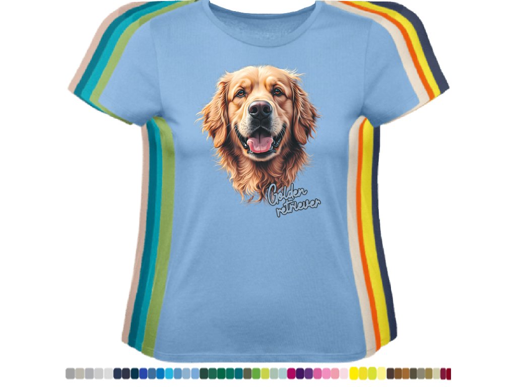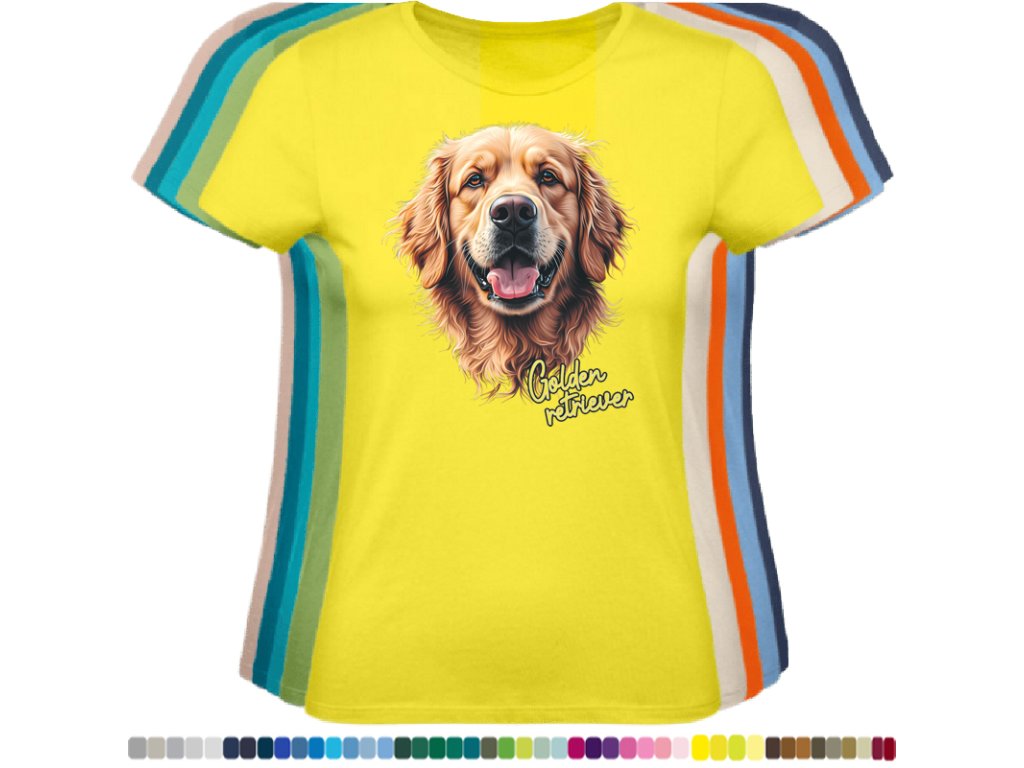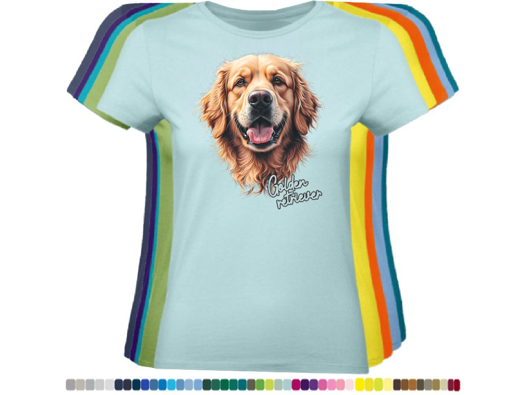 DÁMSKÉ LEVNÉ BAVLNĚNÉ TRIČKO S DIGITÁLNÍM POTISKEM PSA ZLATÝ RETRÍVR
