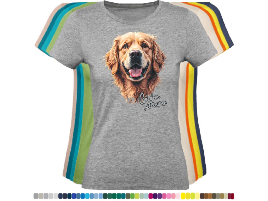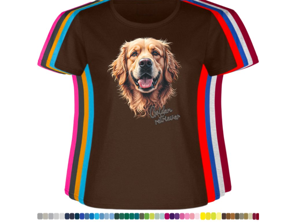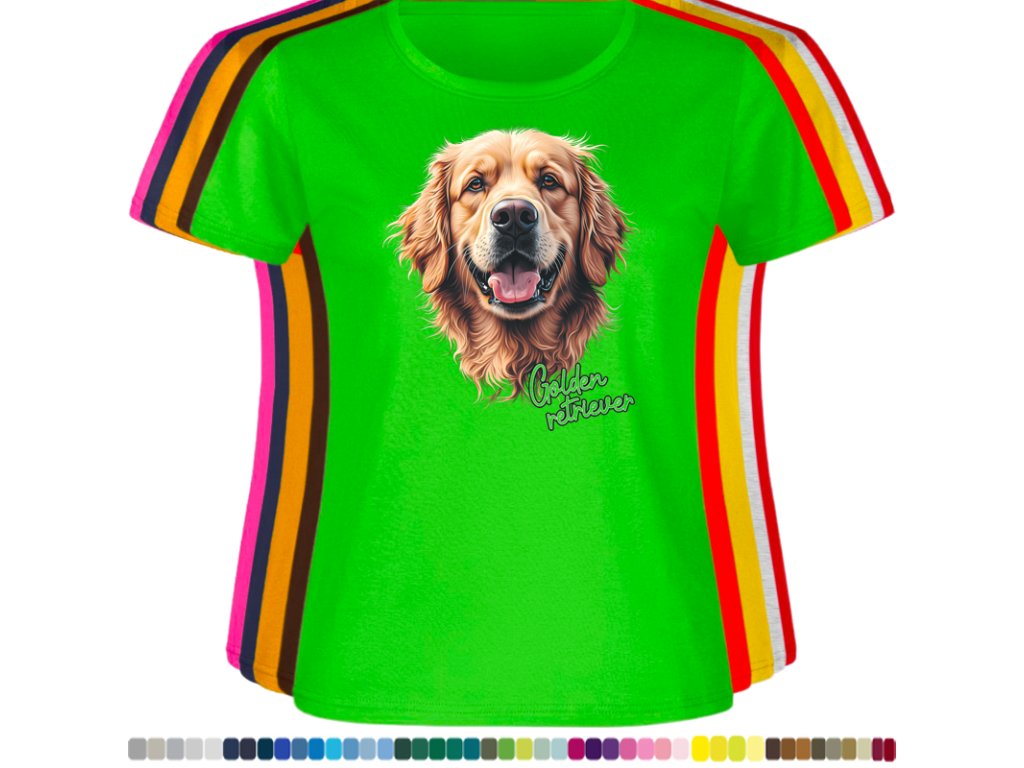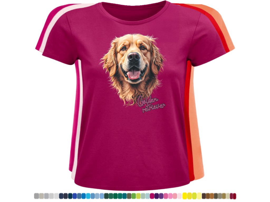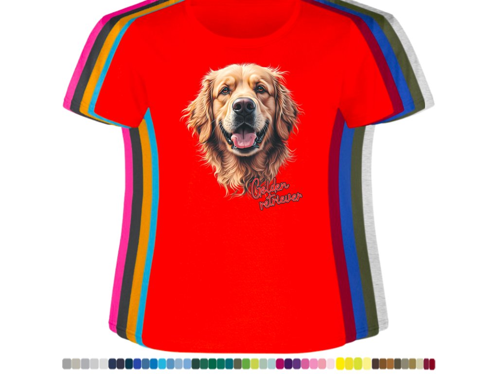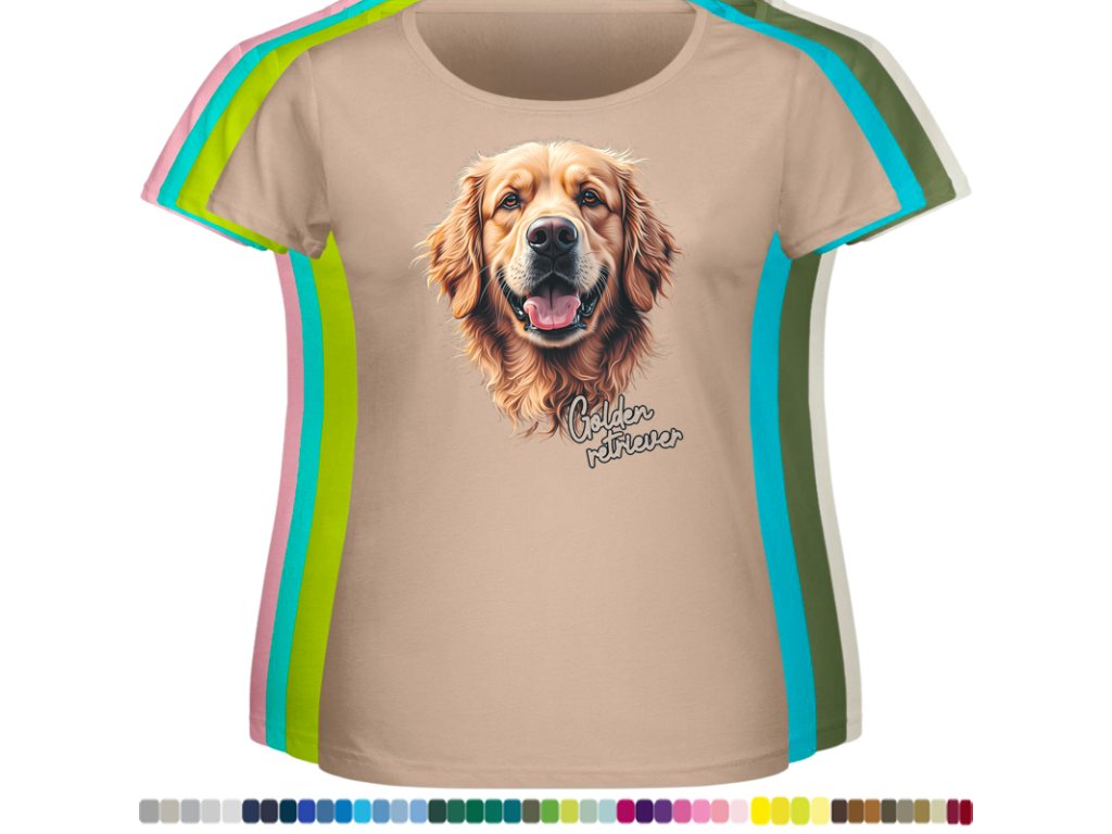 DÁMSKÉ LEVNÉ BAVLNĚNÉ TRIČKO S DIGITÁLNÍM POTISKEM PSA ZLATÝ RETRÍVR