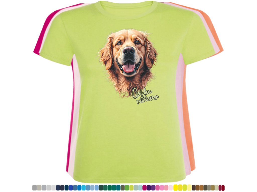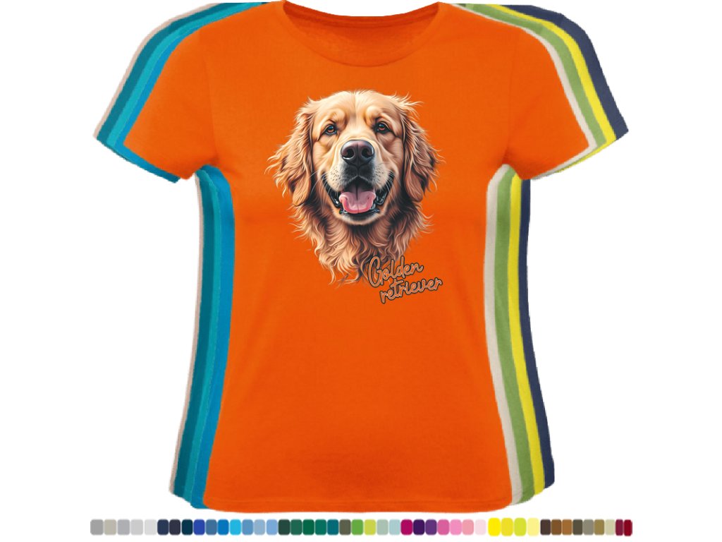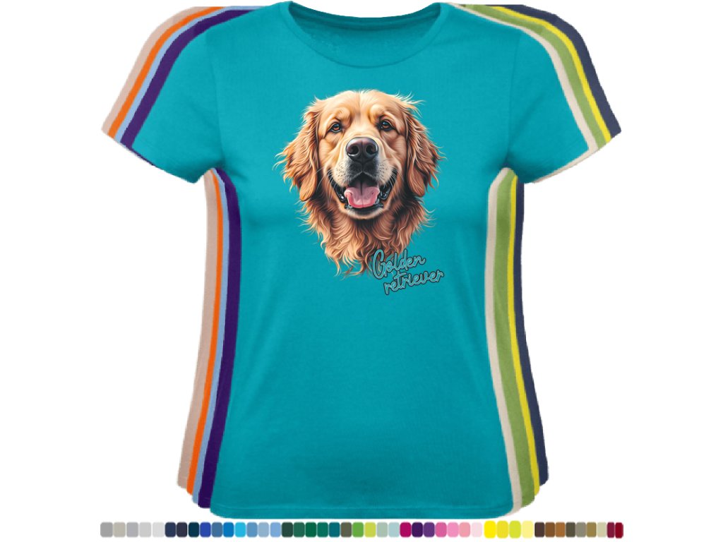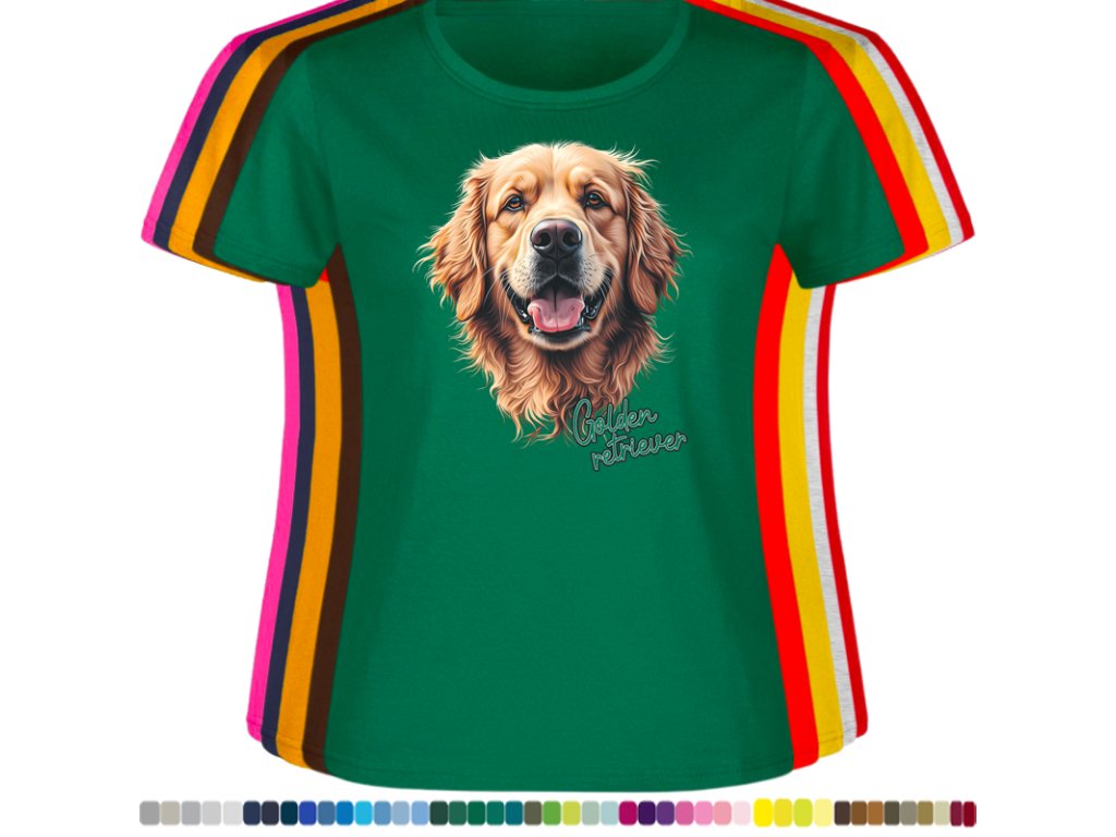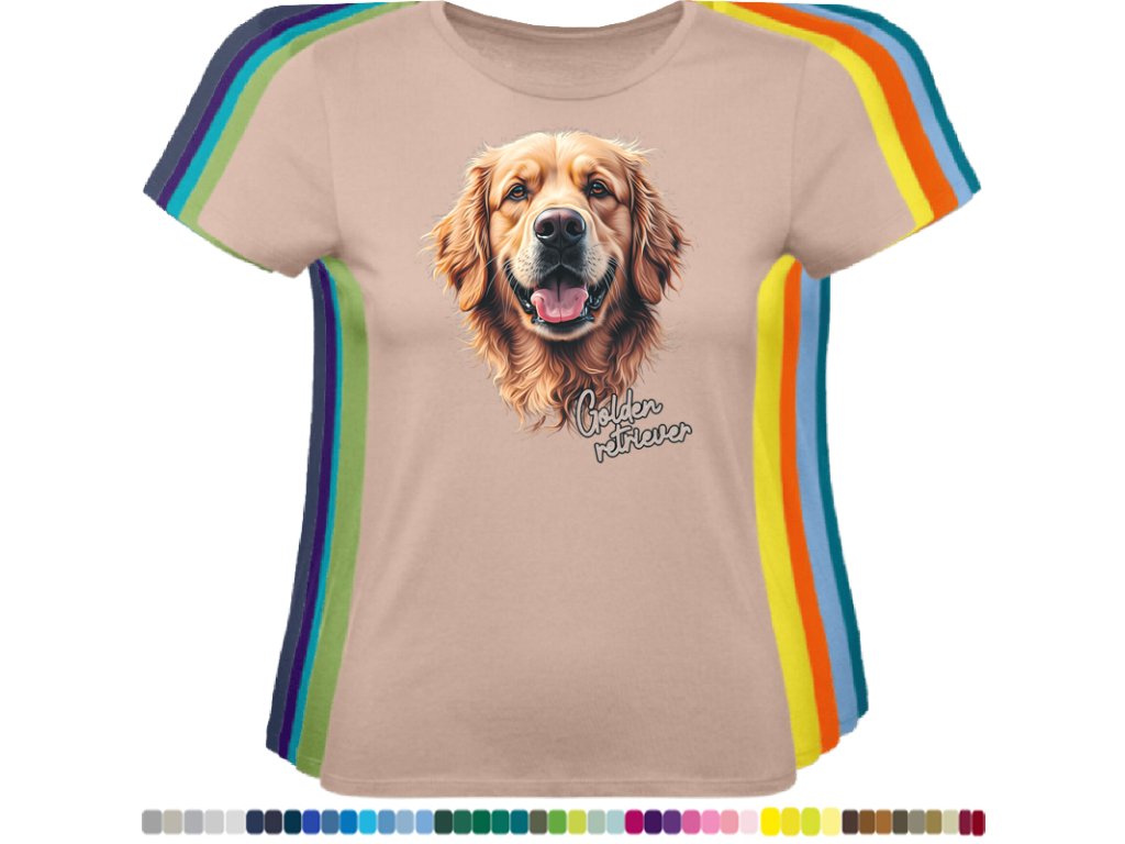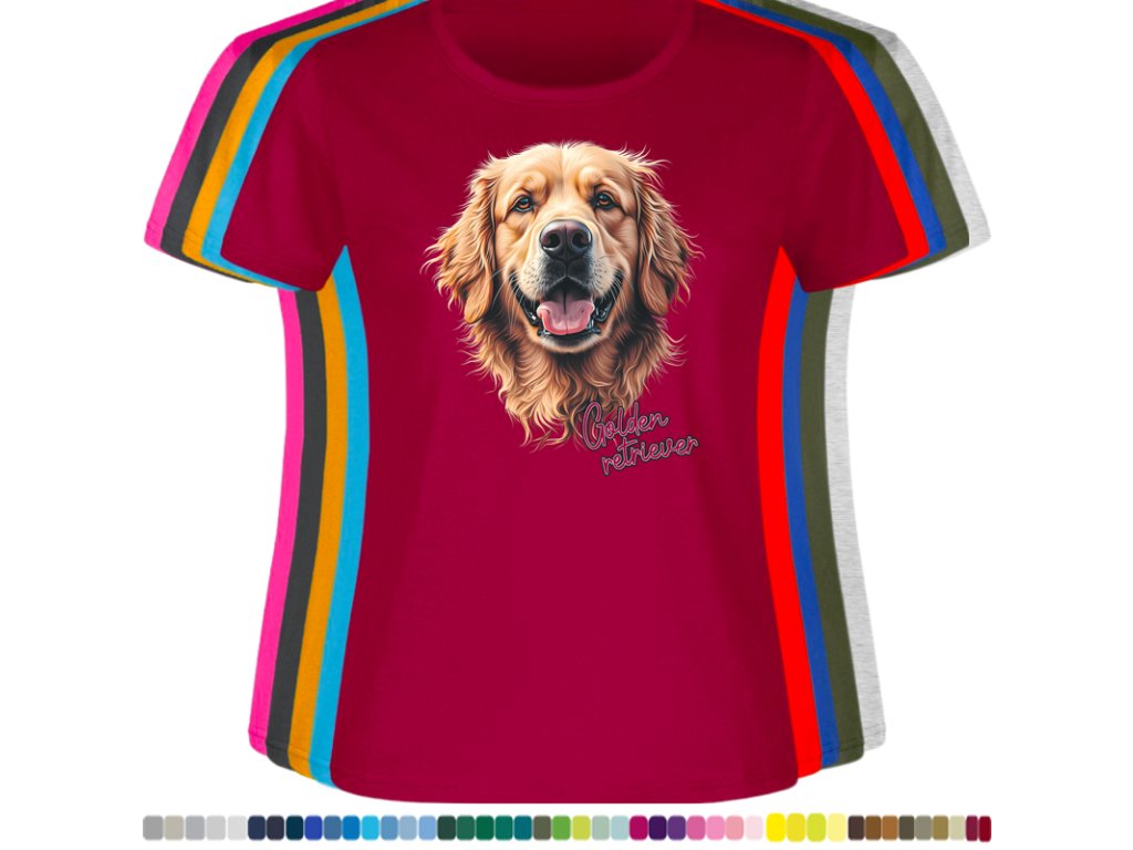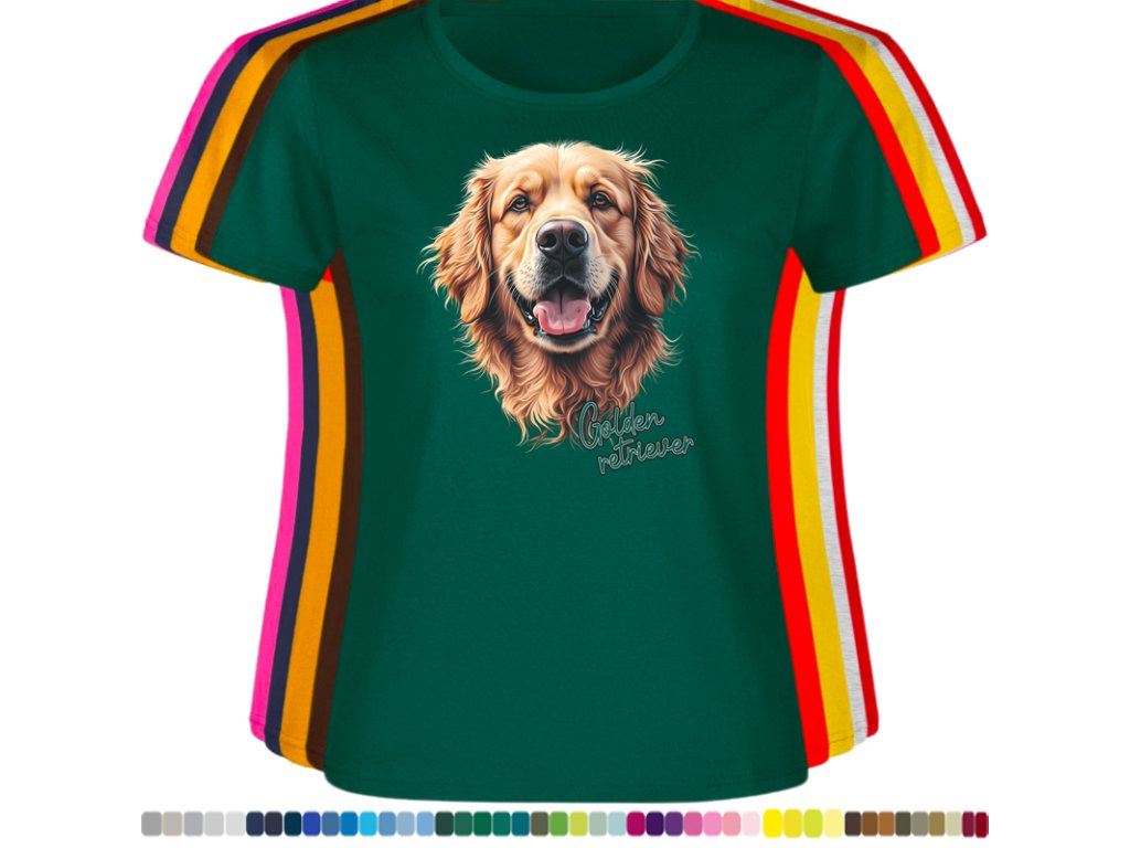 DÁMSKÉ LEVNÉ BAVLNĚNÉ TRIČKO S DIGITÁLNÍM POTISKEM PSA ZLATÝ RETRÍVR
