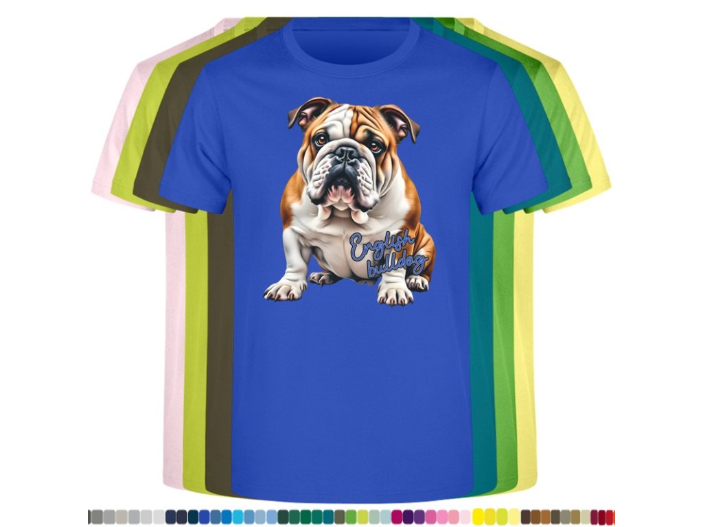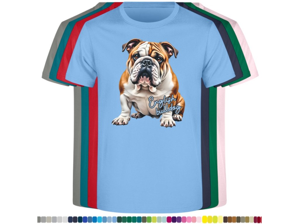 DĚTSKÉ LEVNÉ BAVLNĚNÉ TRIČKO S DIGITÁLNÍM POTISKEM ANGLICKÝ BULDOK