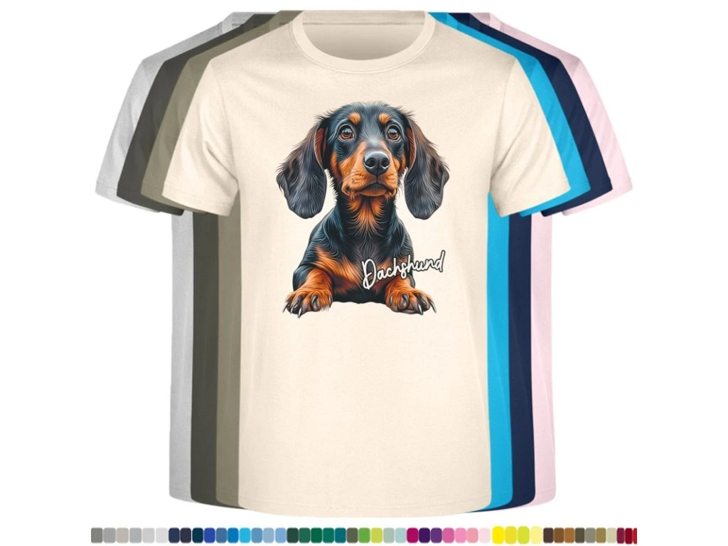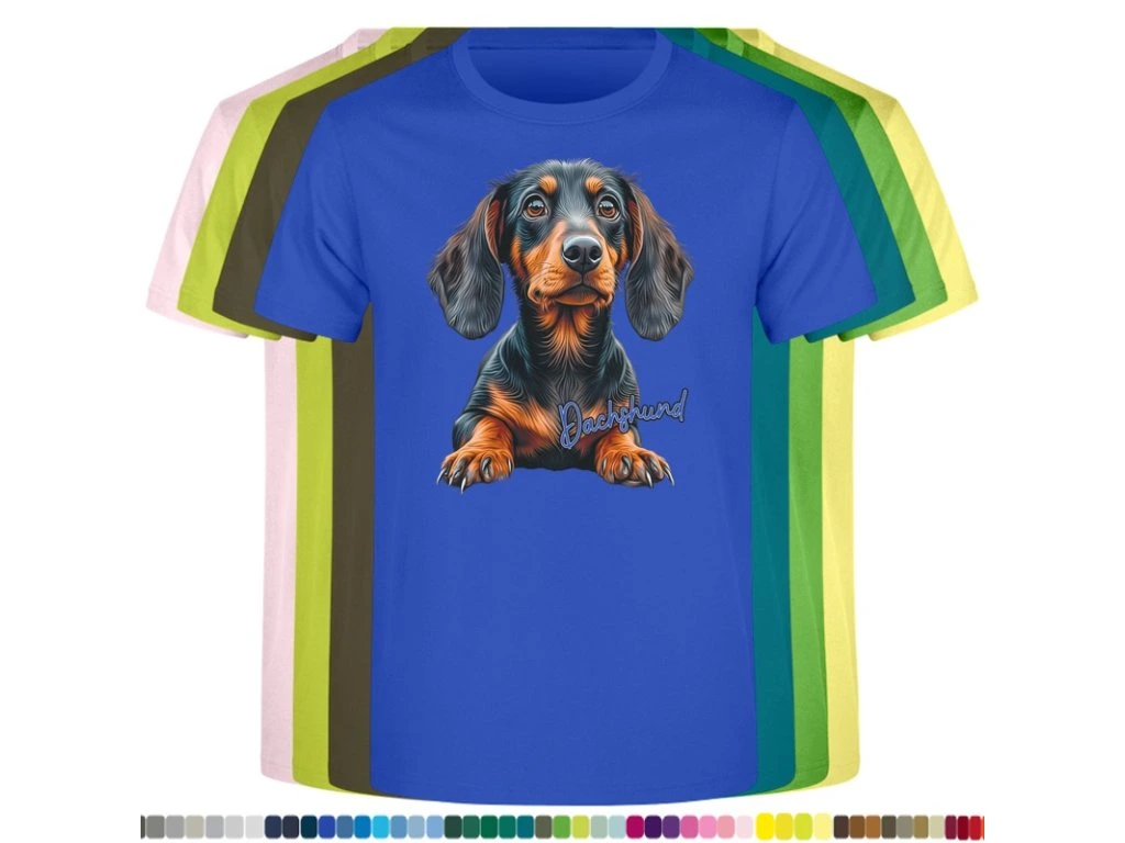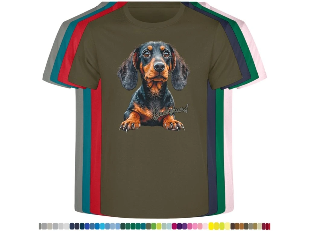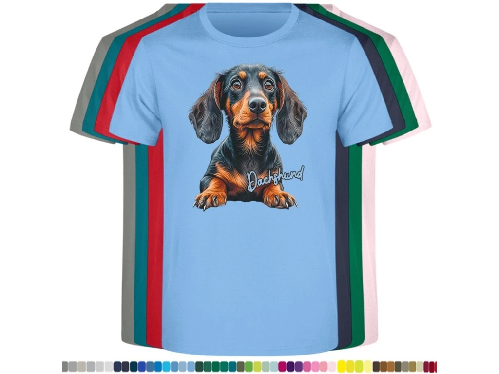 Dětské levné bavlněné tričko s digitálním potiskem Jezevčík (EUvel.)