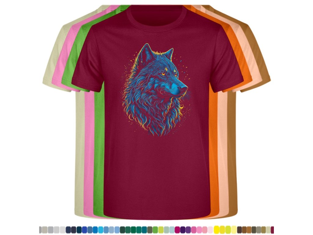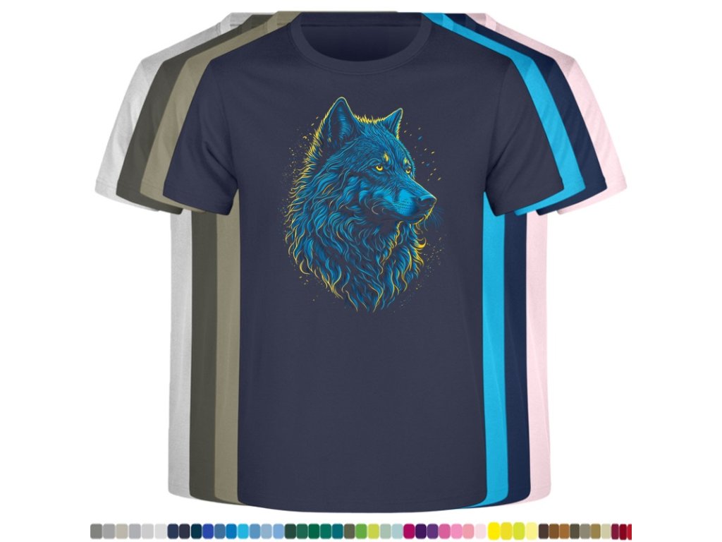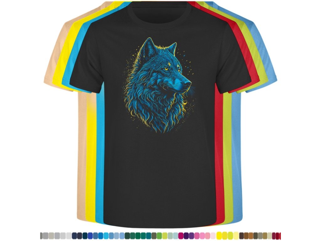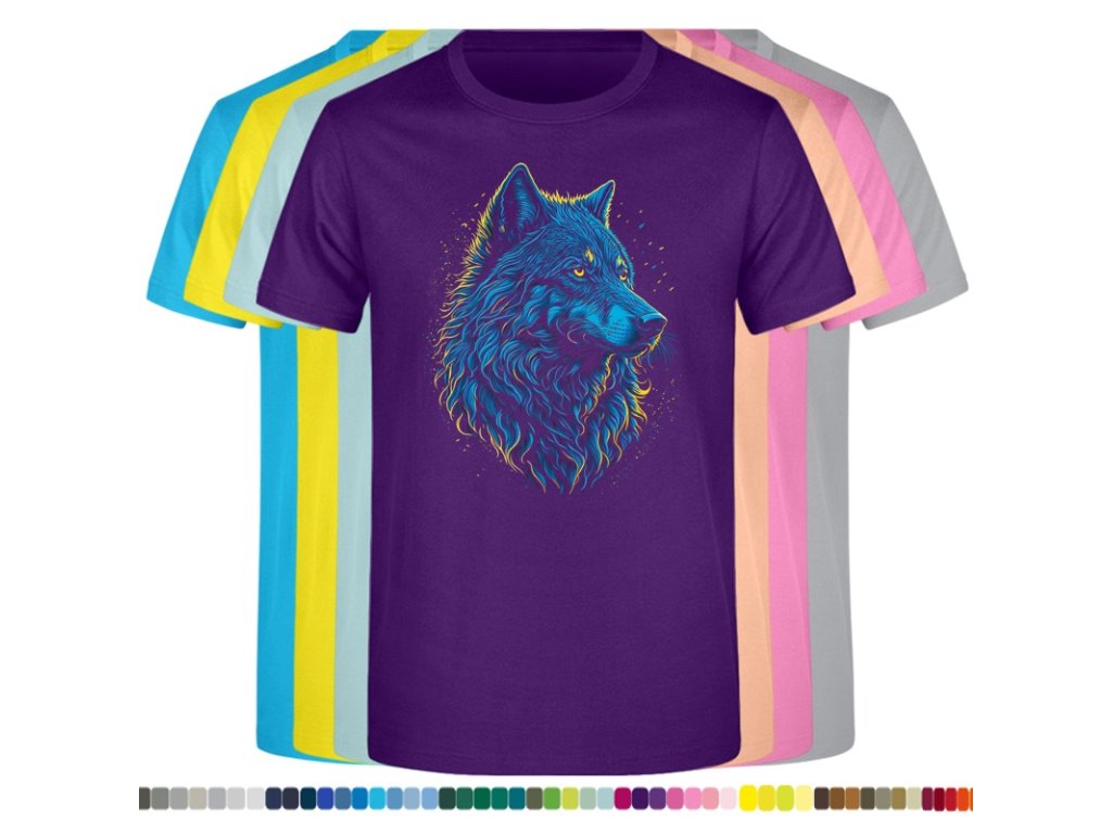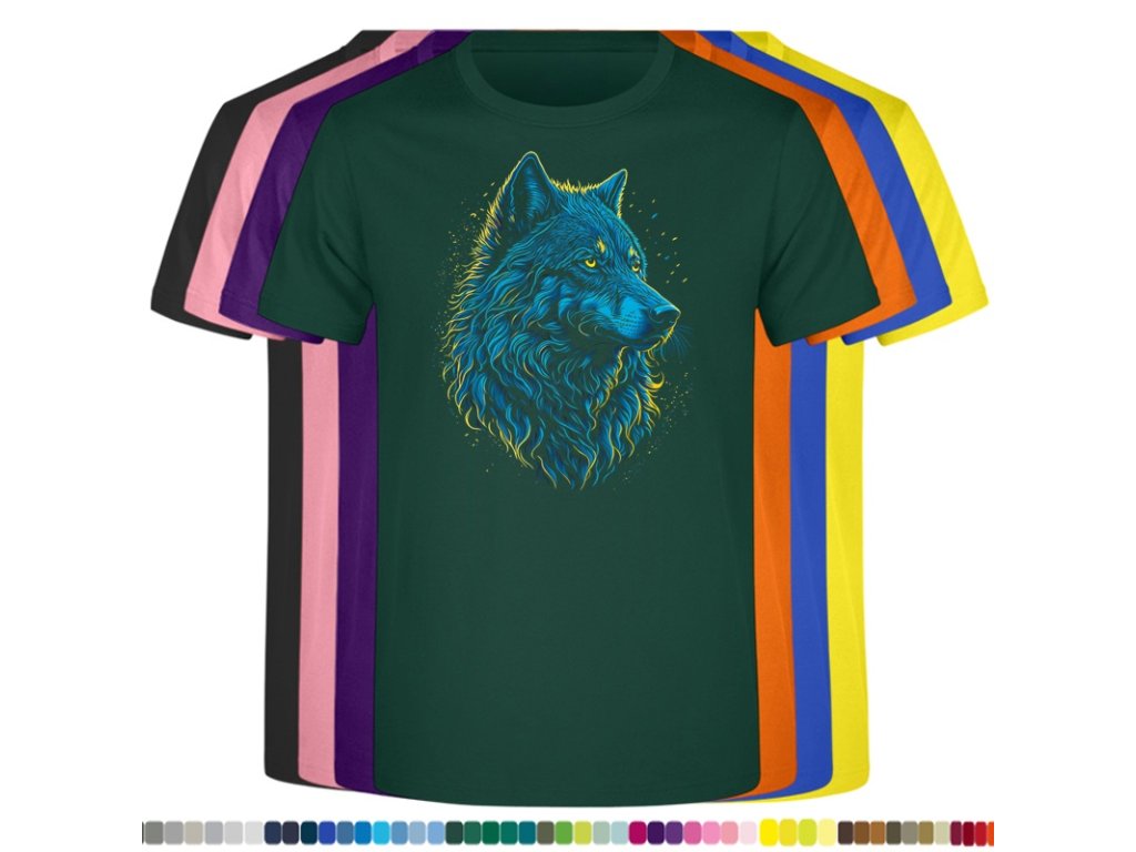 DĚTSKÉ LEVNÉ BAVLNĚNÉ TRIČKO S DIGITÁLNÍM POTISKEM MAGICKÝ MODRÝ VLK