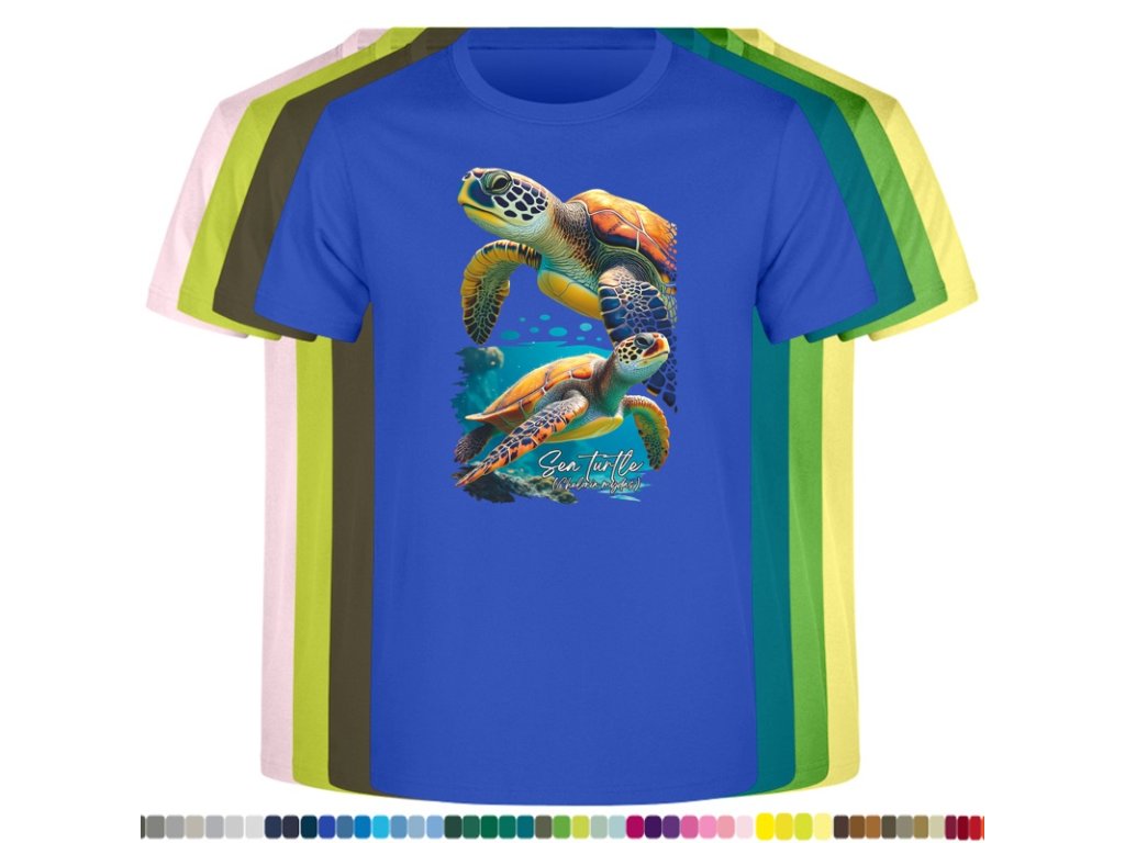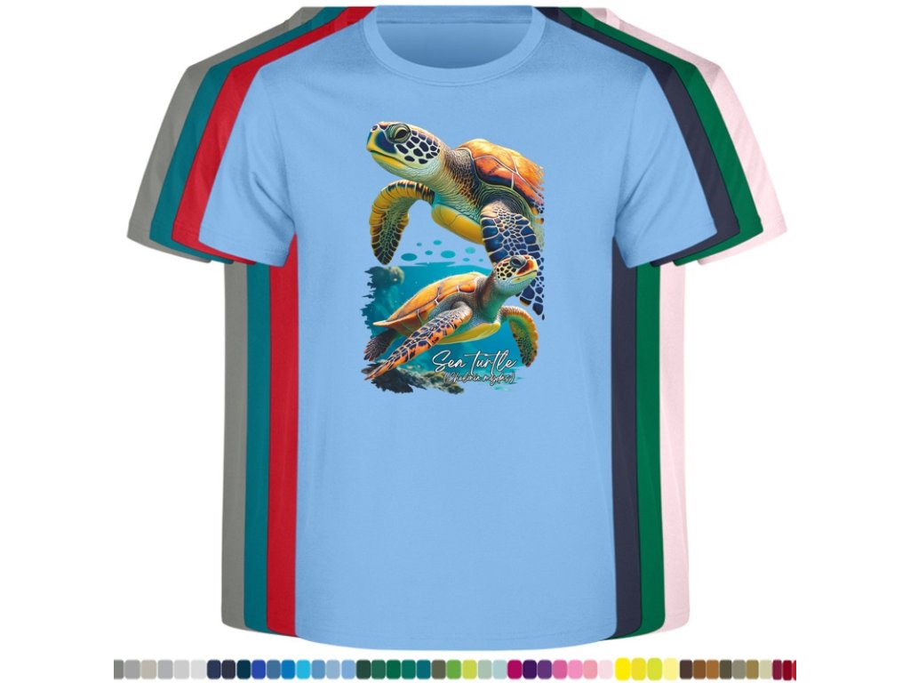 DĚTSKÉ LEVNÉ BAVLNĚNÉ TRIČKO S DIGITÁLNÍM POTISKEM MOŘSKÉ ŽELVIČKY