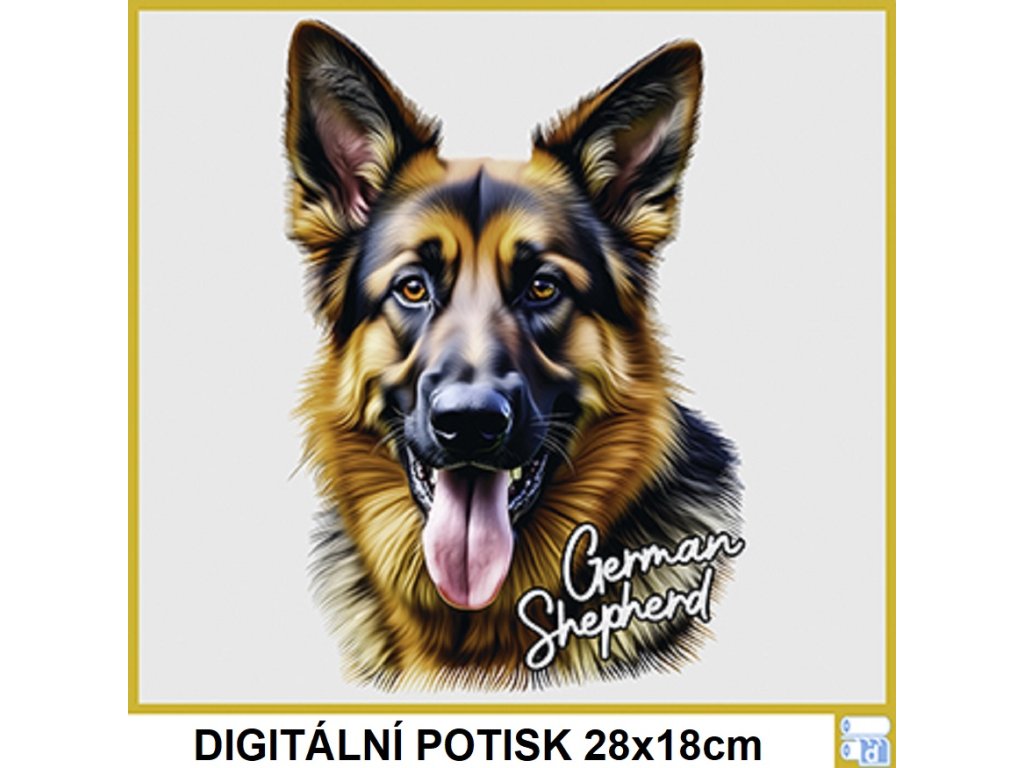 Dětské levné bavlněné tričko s digitálním potiskem Německý ovčák (EUvel.)