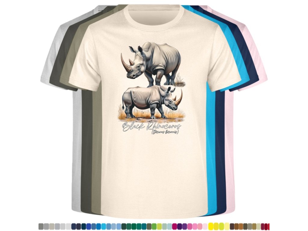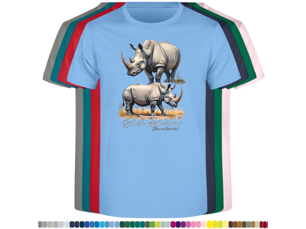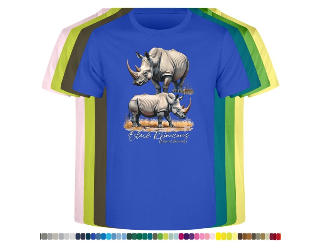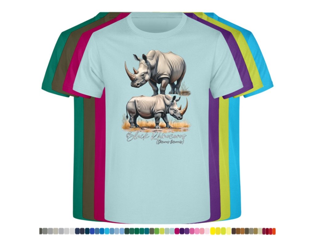 Dětské levné bavlněné tričko s digitálním potiskem Nosorožci černí (EUvel.)