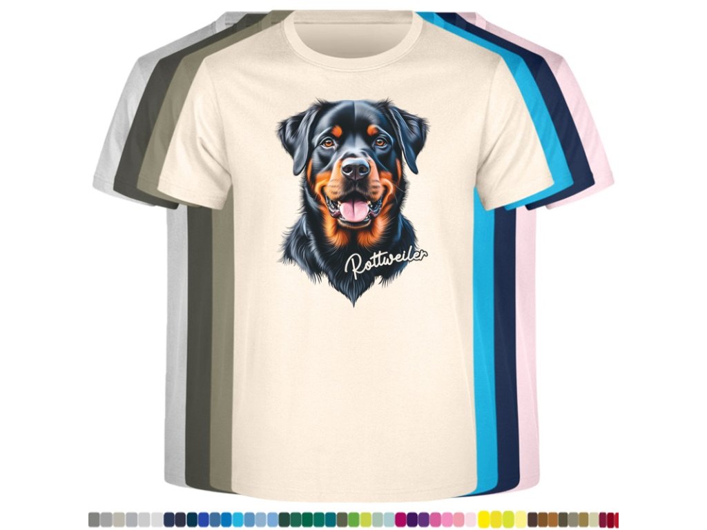 Dětské levné bavlněné tričko s digitálním potiskem Rotvajler (EUvel.)