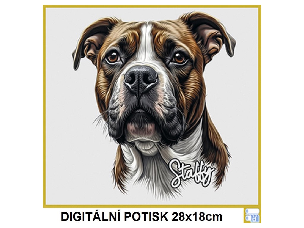 Dětské levné bavlněné tričko s digitálním potiskem Stafordšírský bulteriér (EUvel.)