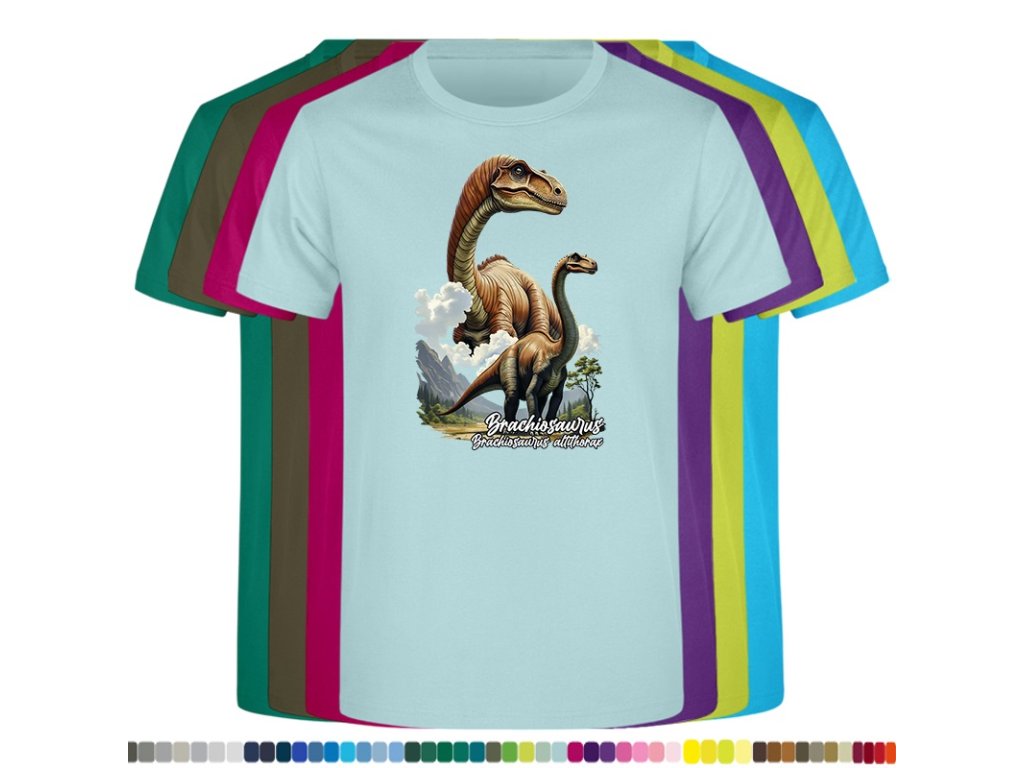 DĚTSKÉ LEVNÉ BAVLNĚNÉ TRIČKO S DIGITÁLNÍM POTISKEM BRACHIOSAURUS