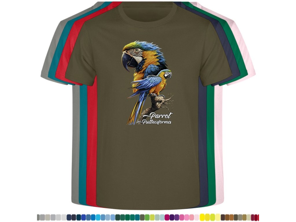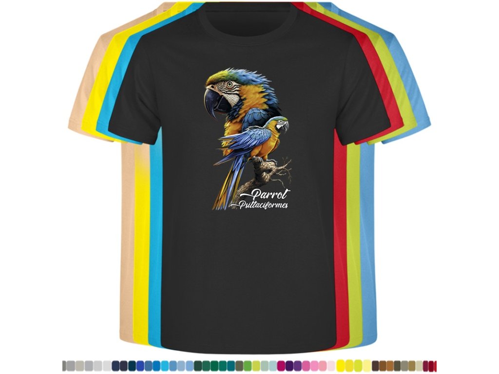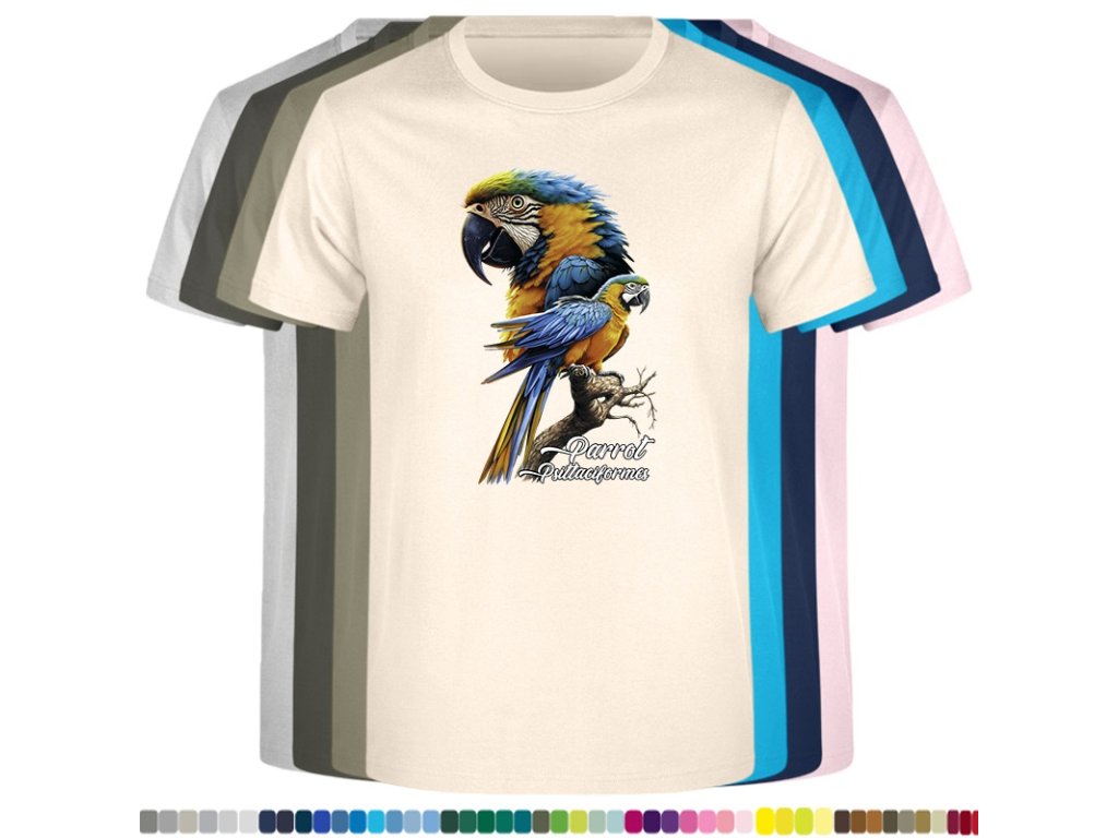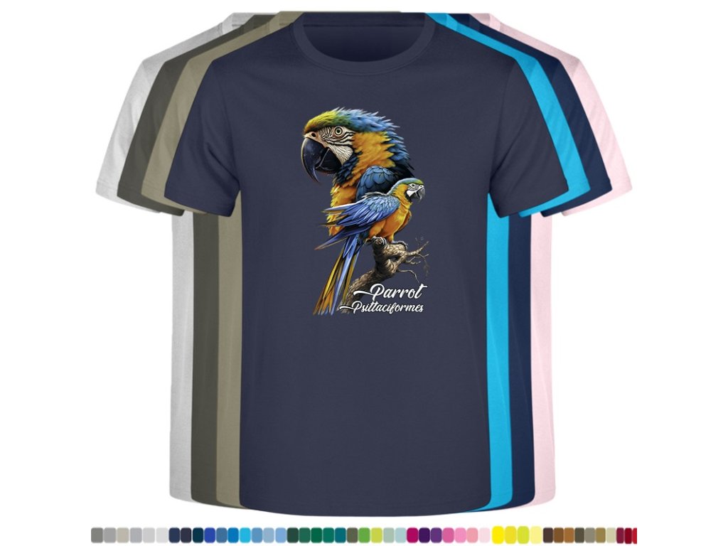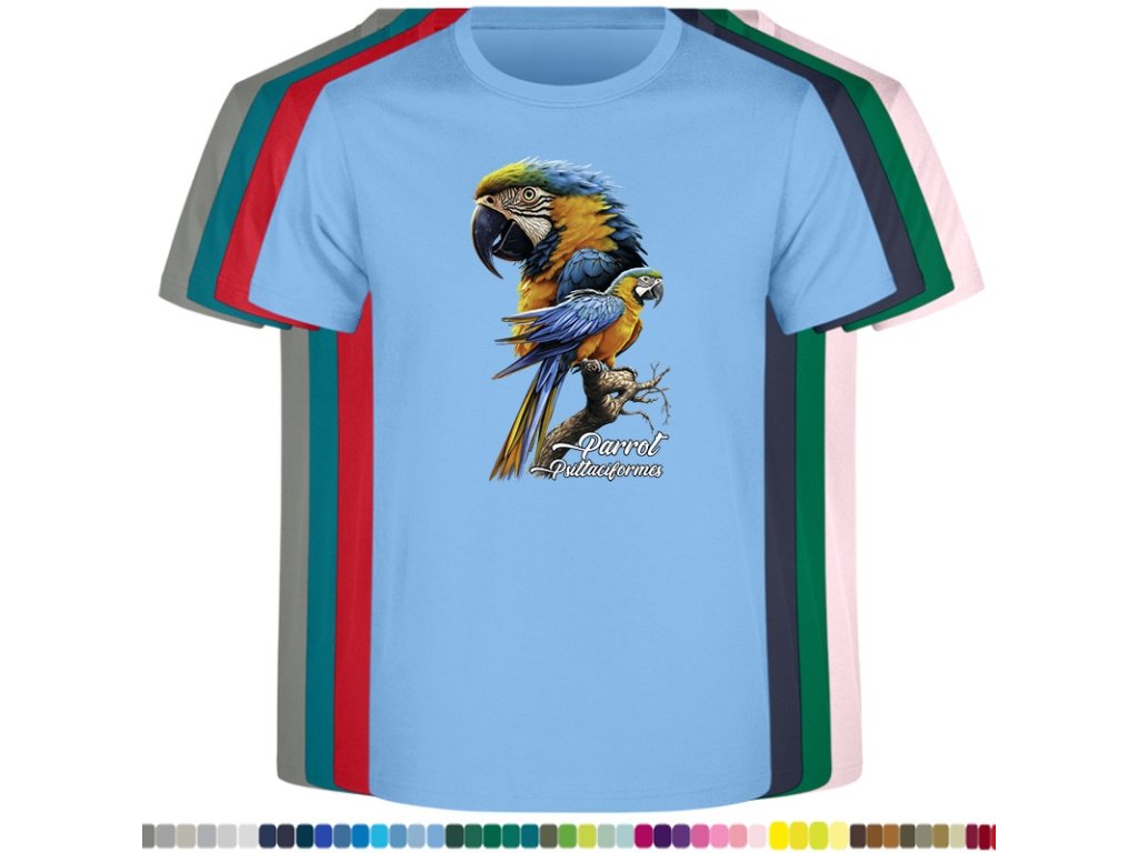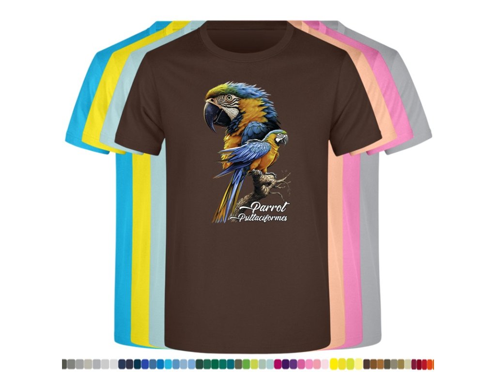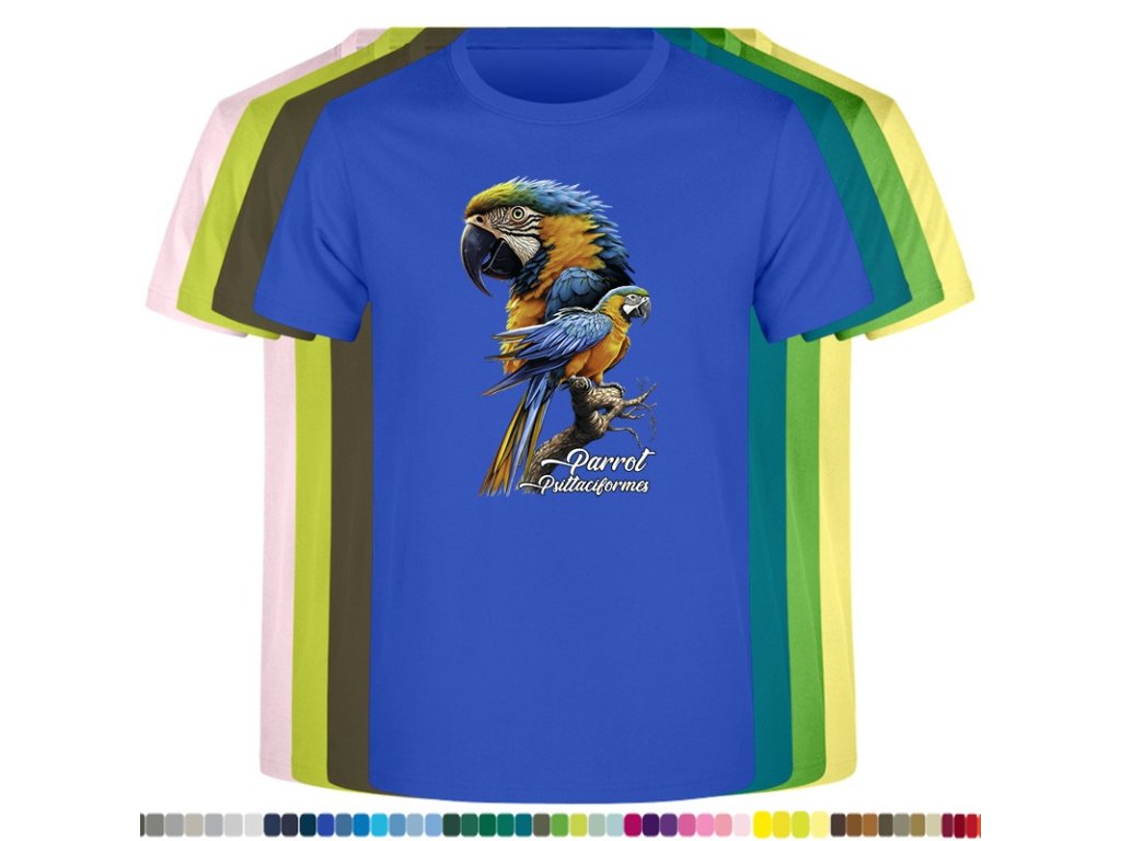 Dětské levné bavlněné tričko s digitálním potiskem Papoušek modrý - ptačí říše (EUvel.)