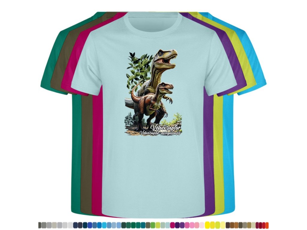 DĚTSKÉ LEVNÉ BAVLNĚNÉ TRIČKO S DIGITÁLNÍM POTISKEM VELOCIRAPTOR