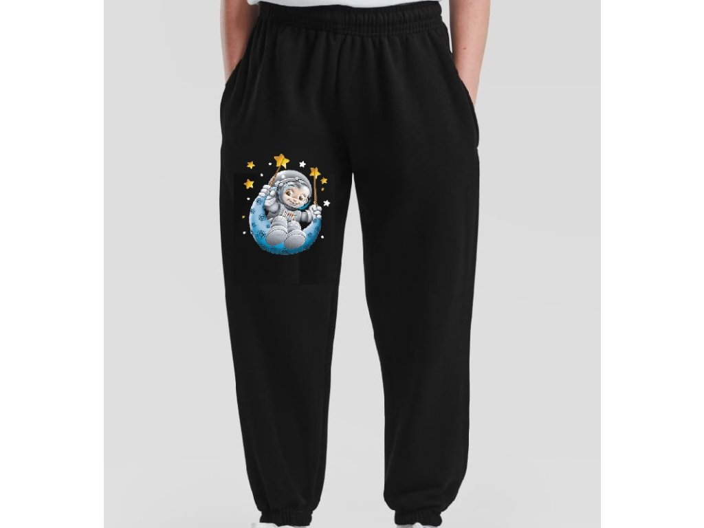 DĚTSKÉ SILNÉ TEPLÁKY S BOČNÍMI KAPSAMI TMAVĚ MODRÉ - POTISK KOSMONAUT