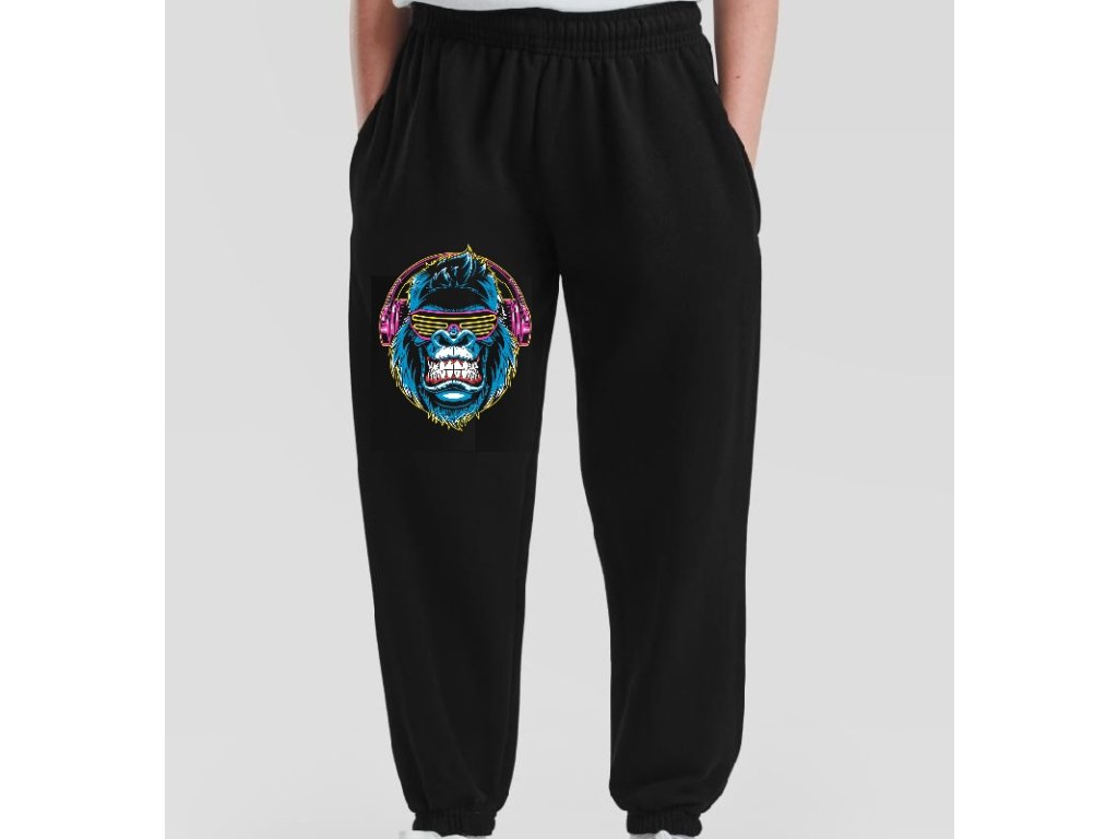Dětské levné tepláky tmavě modré Neonová opice (vel.140 a 164)