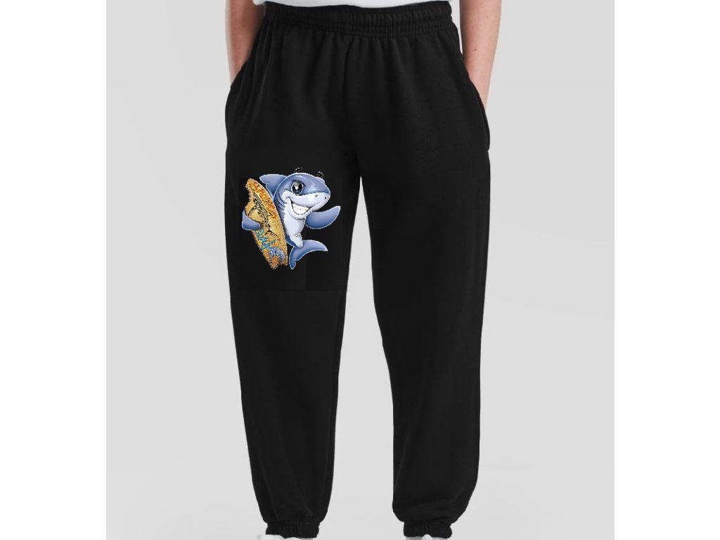 Dětské levné tepláky tmavě modré Žralok surfař (vel.116)