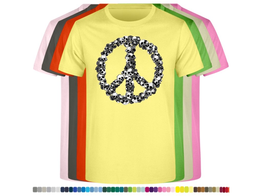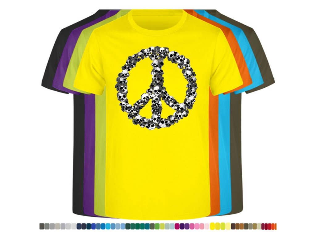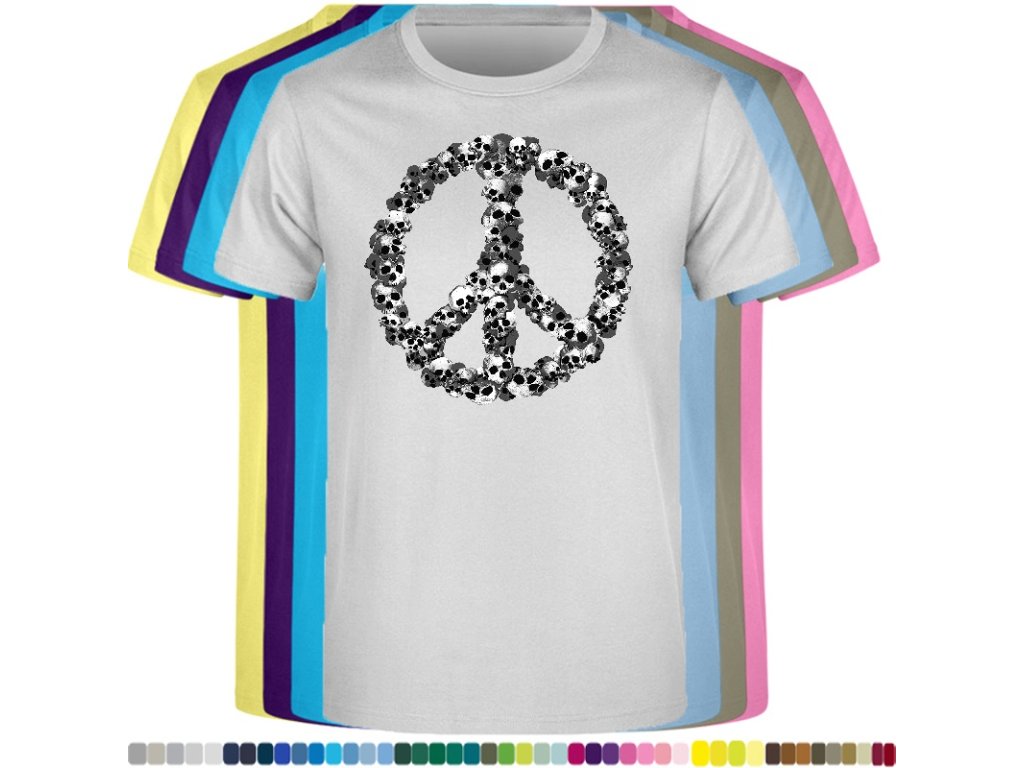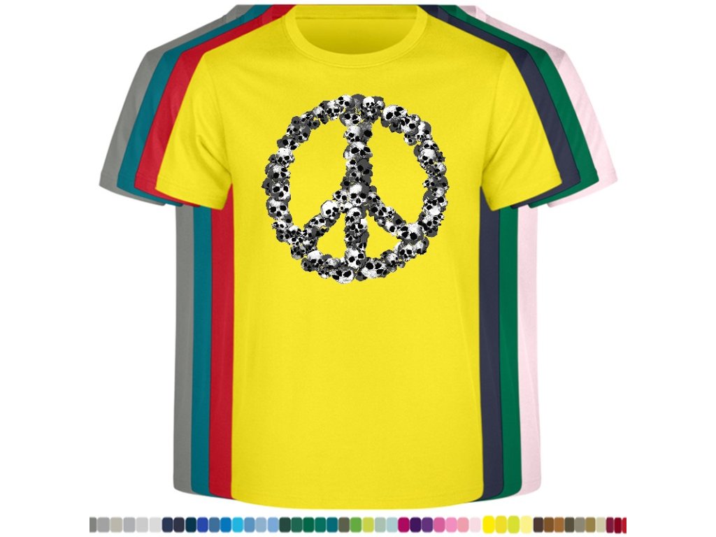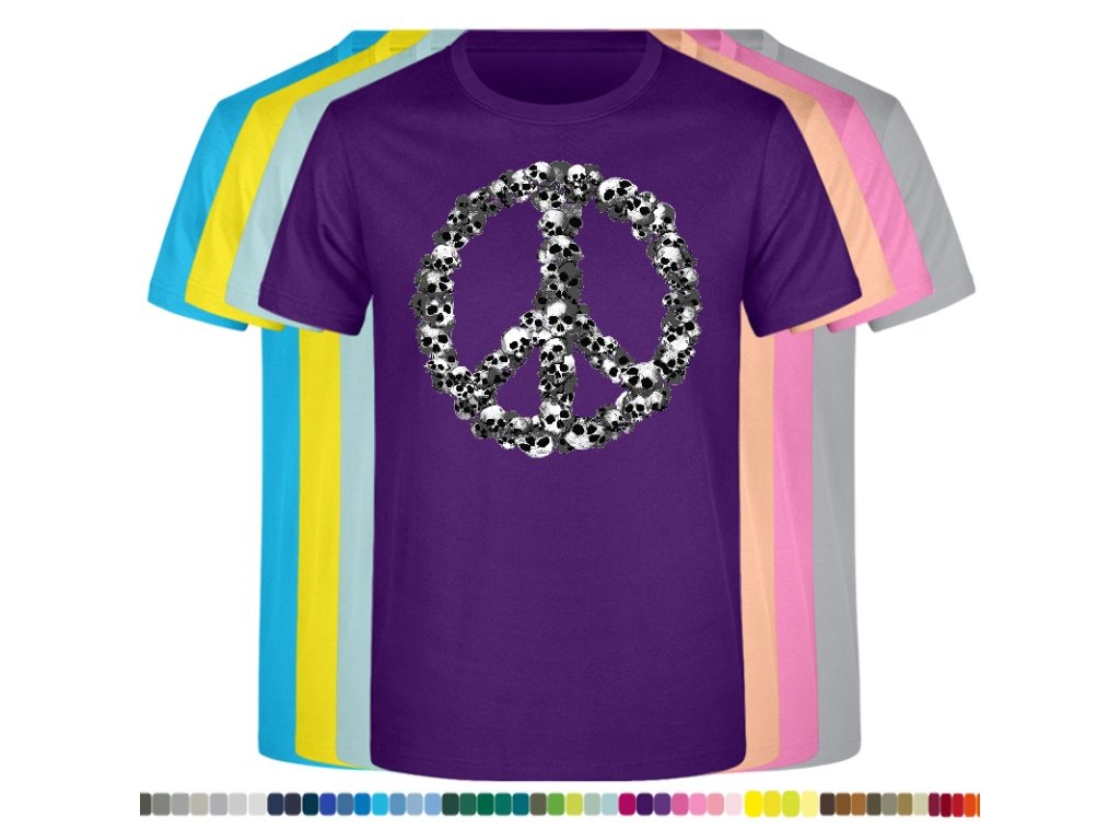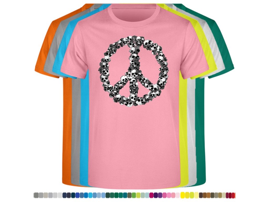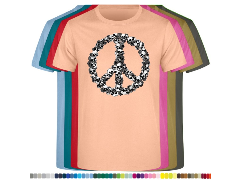 Levné bavlněné tričko s digitálním potiskem Hipie lebky