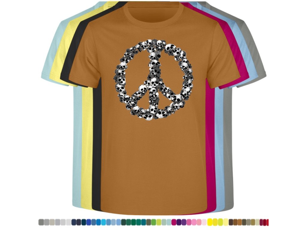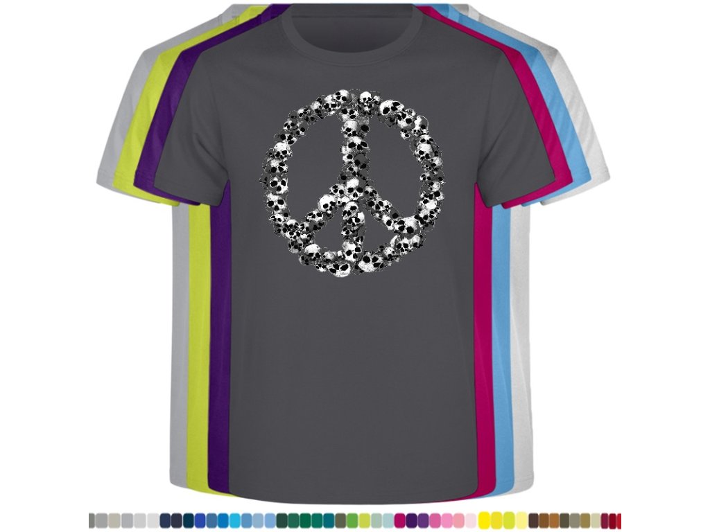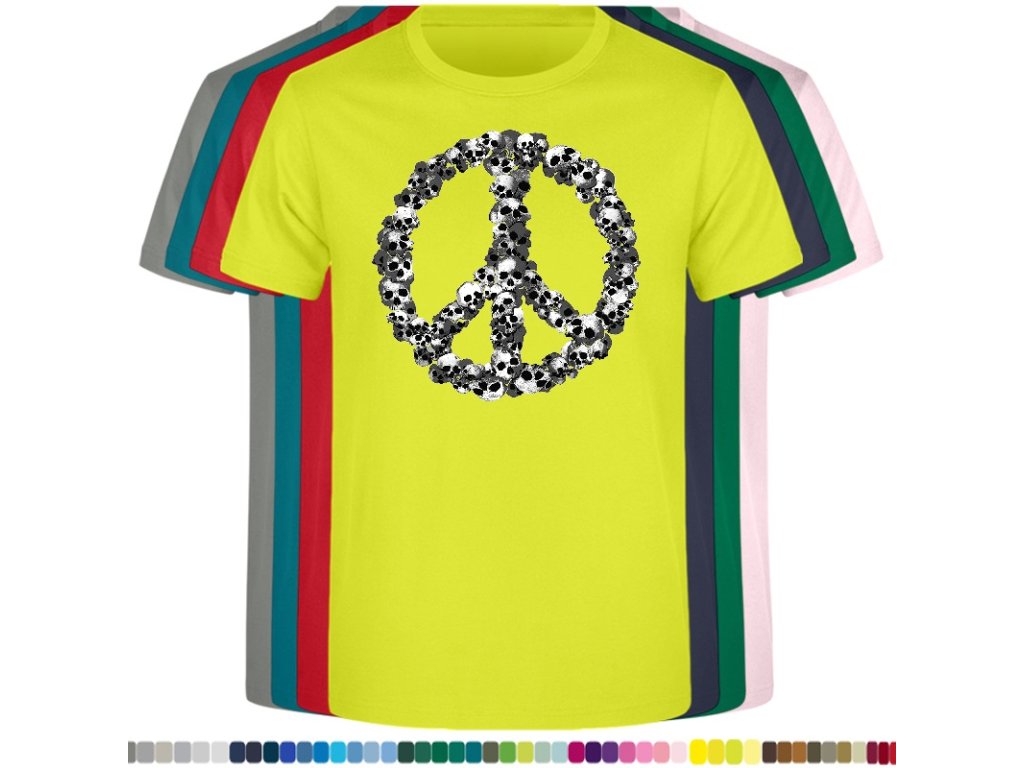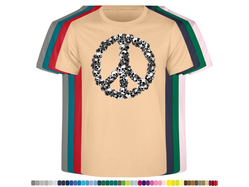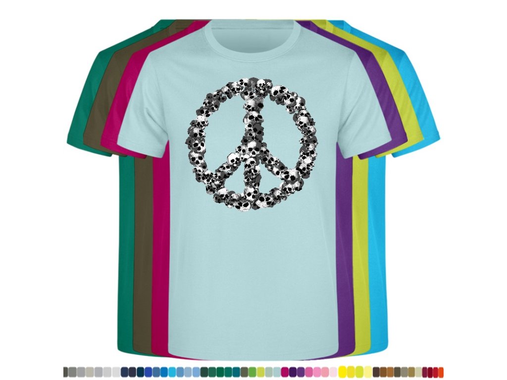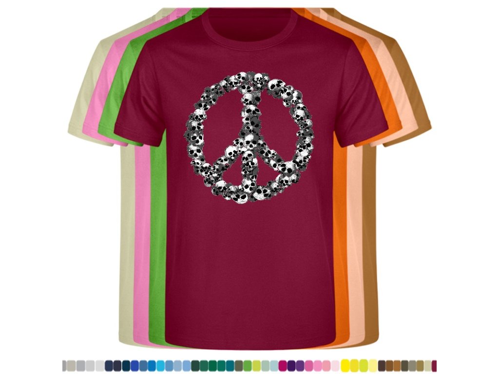 Levné bavlněné tričko s digitálním potiskem Hipie lebky