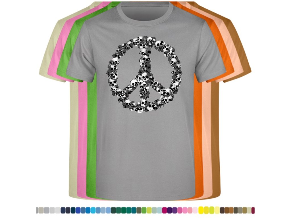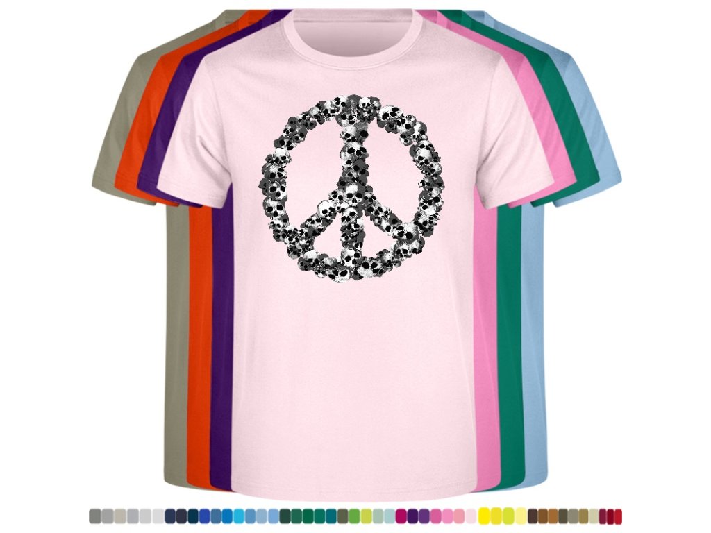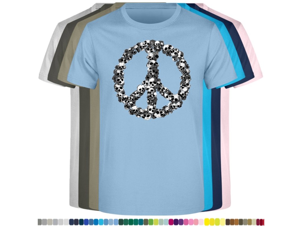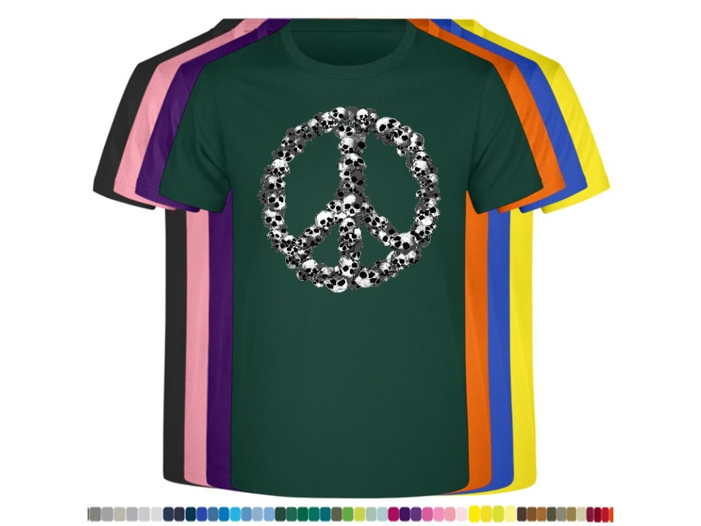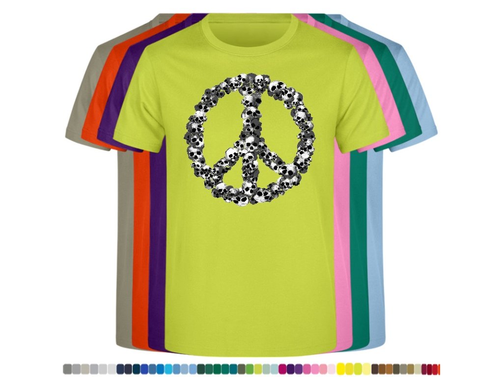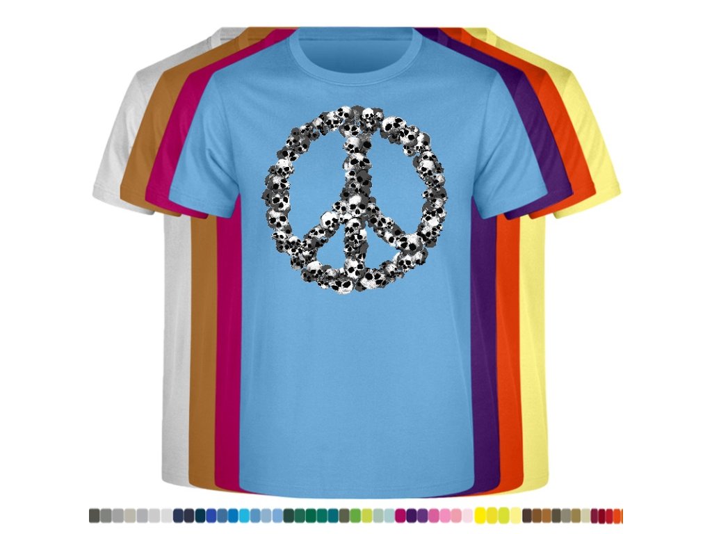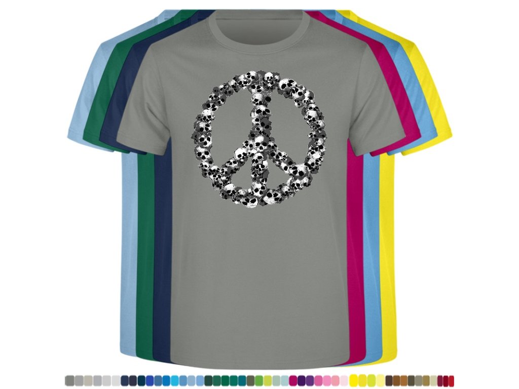 Levné bavlněné tričko s digitálním potiskem Hipie lebky