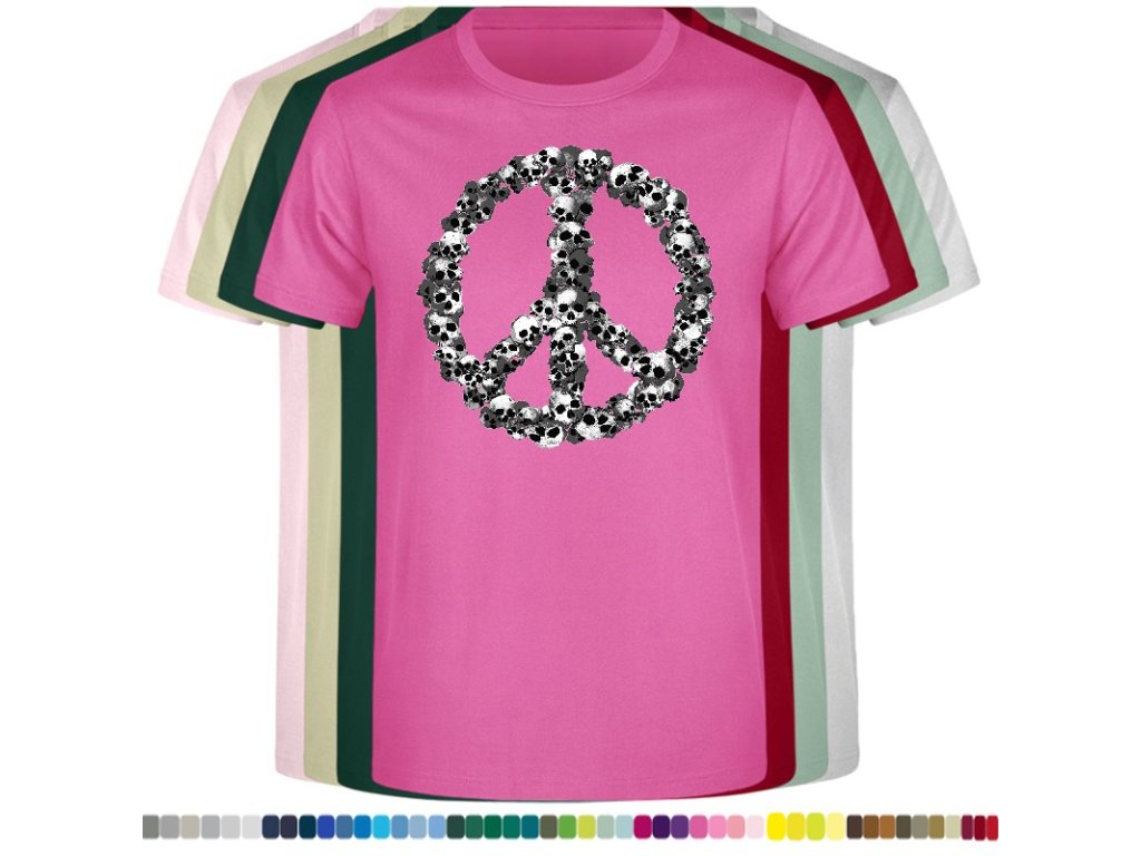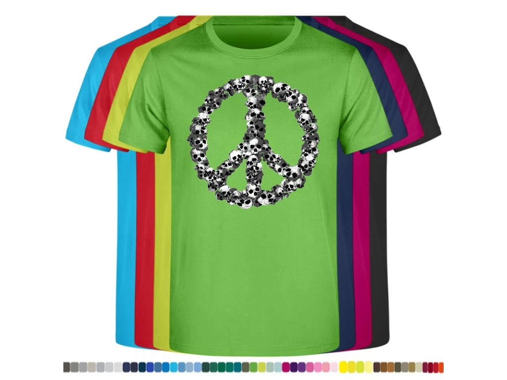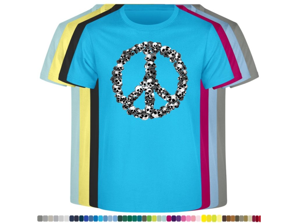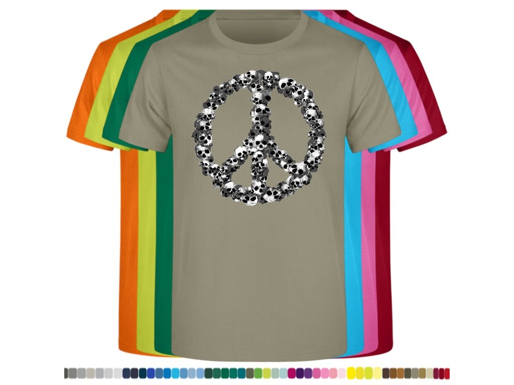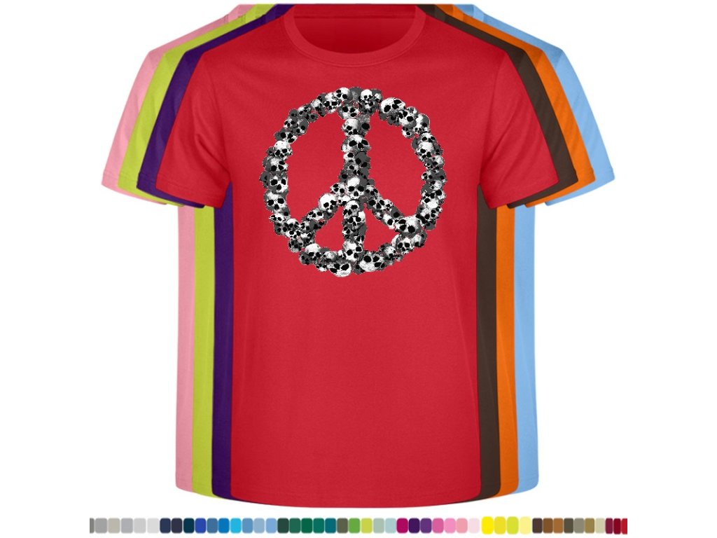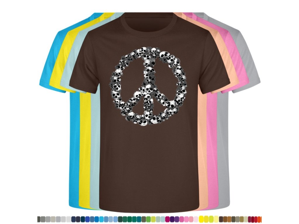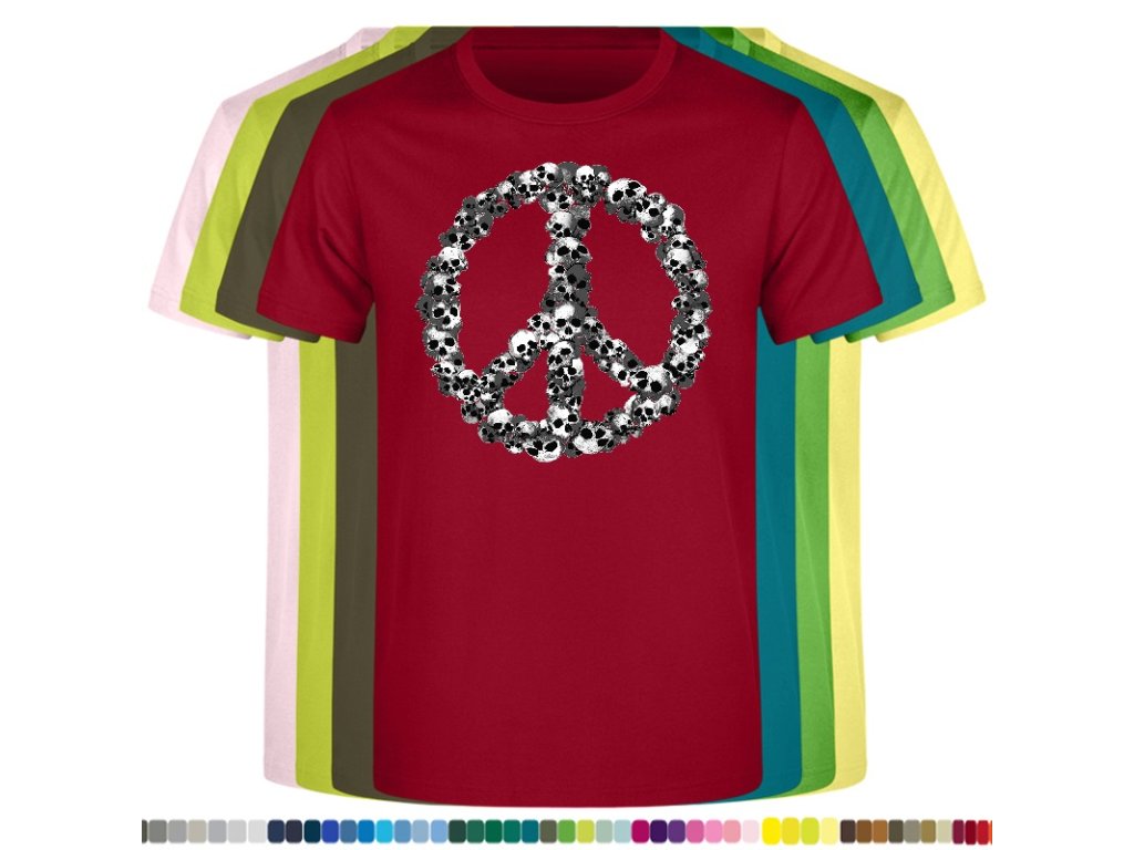 Levné bavlněné tričko s digitálním potiskem Hipie lebky