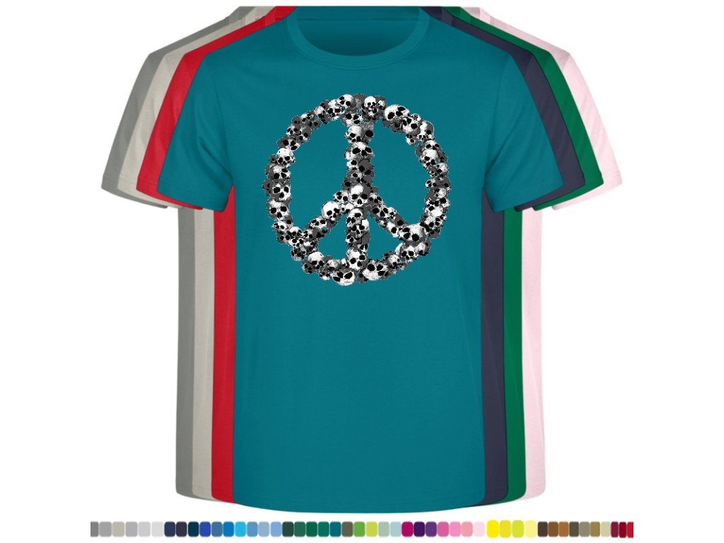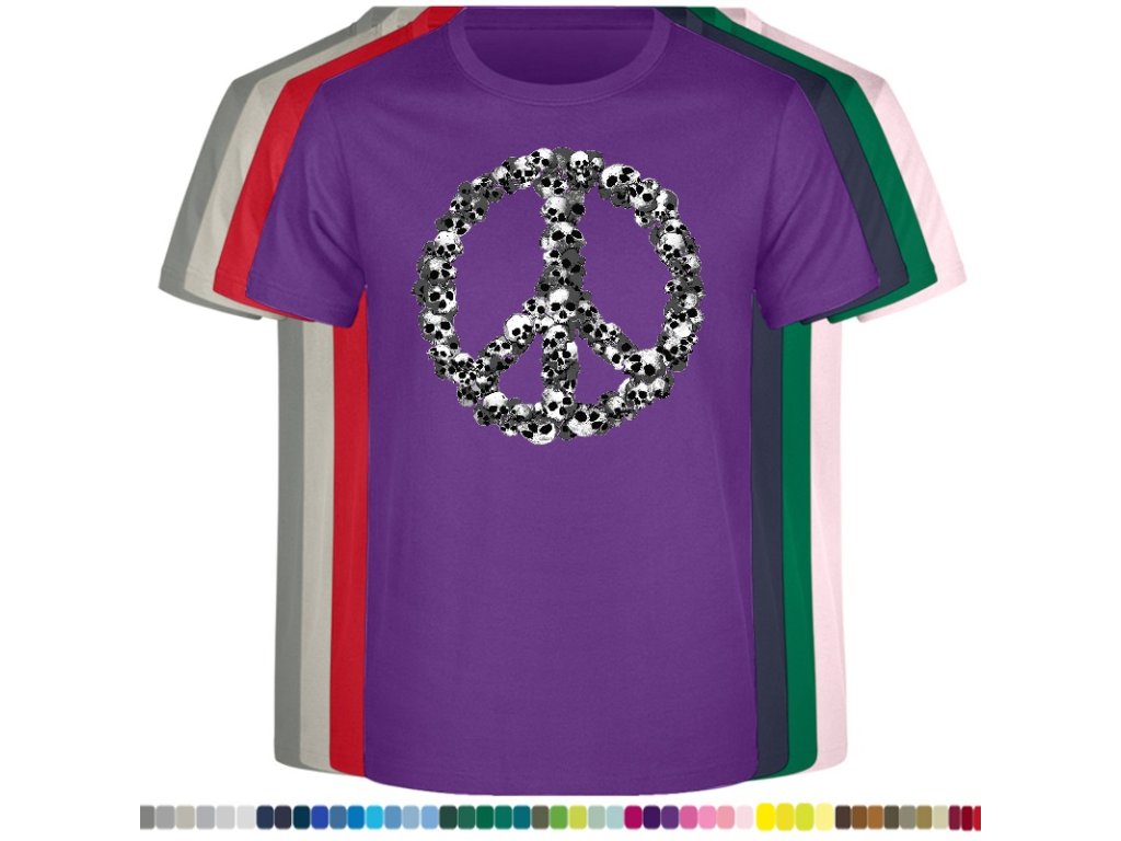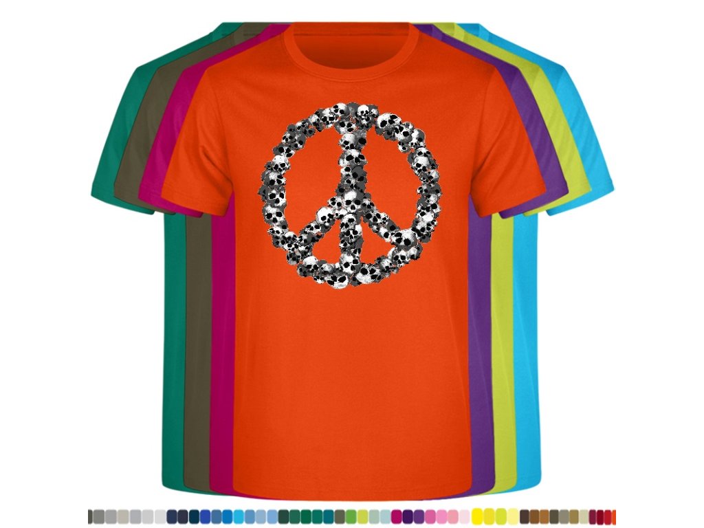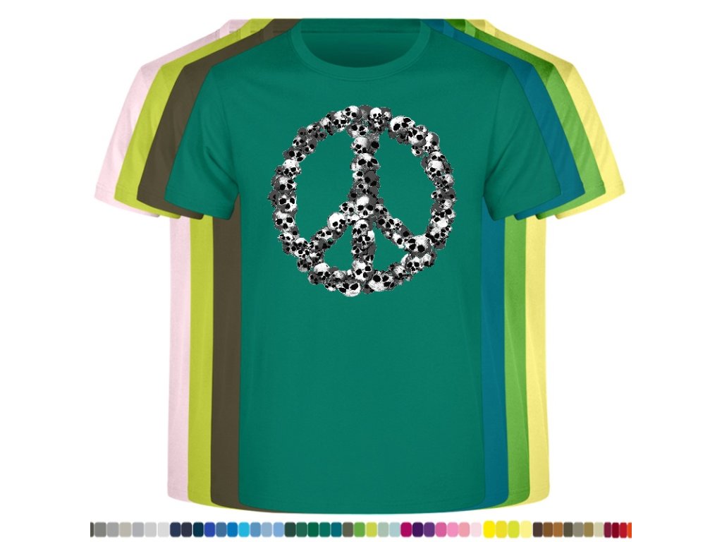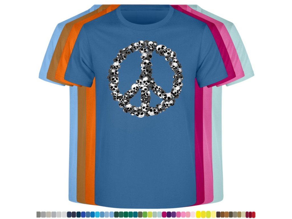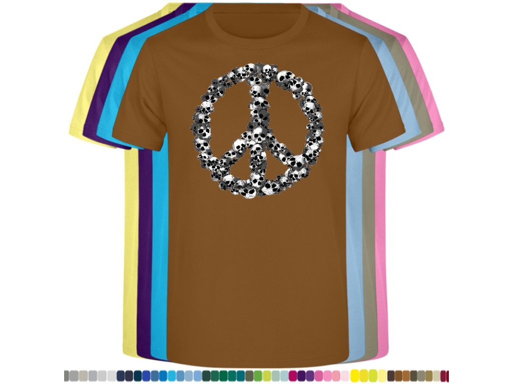 Levné bavlněné tričko s digitálním potiskem Hipie lebky