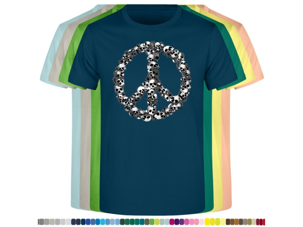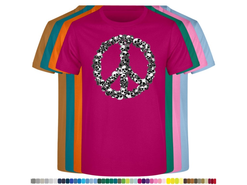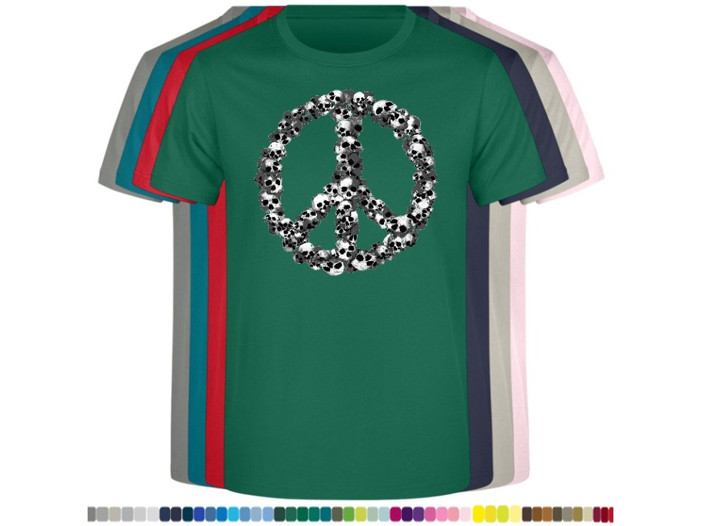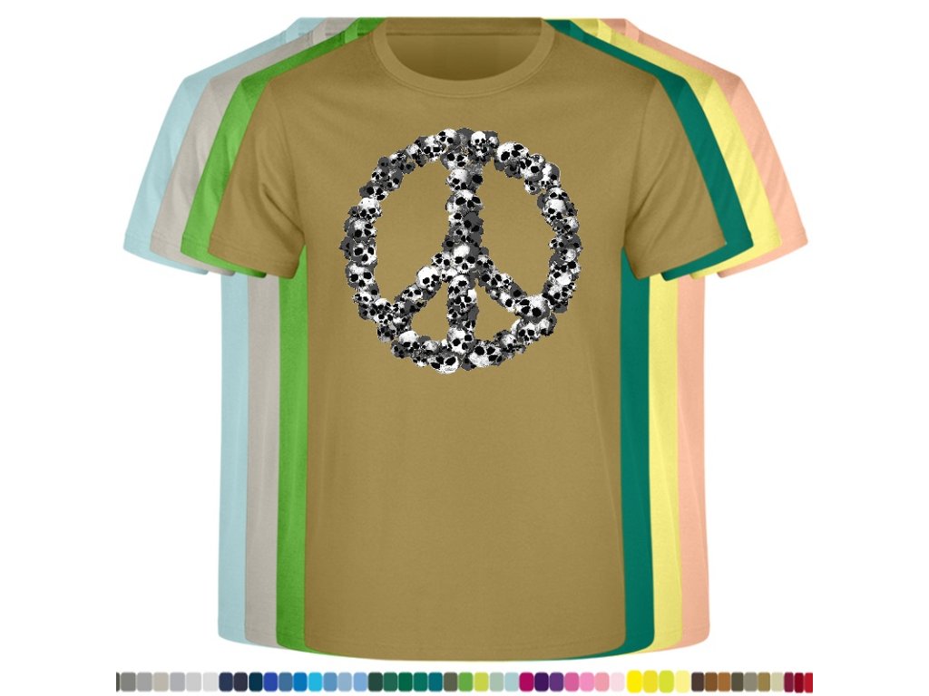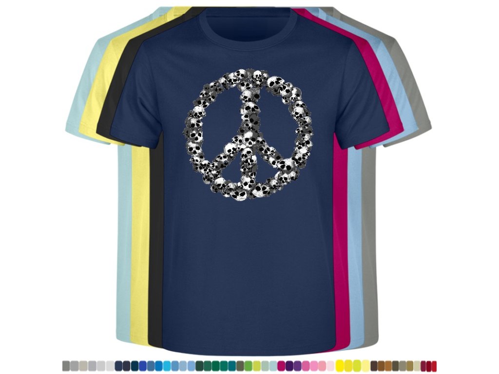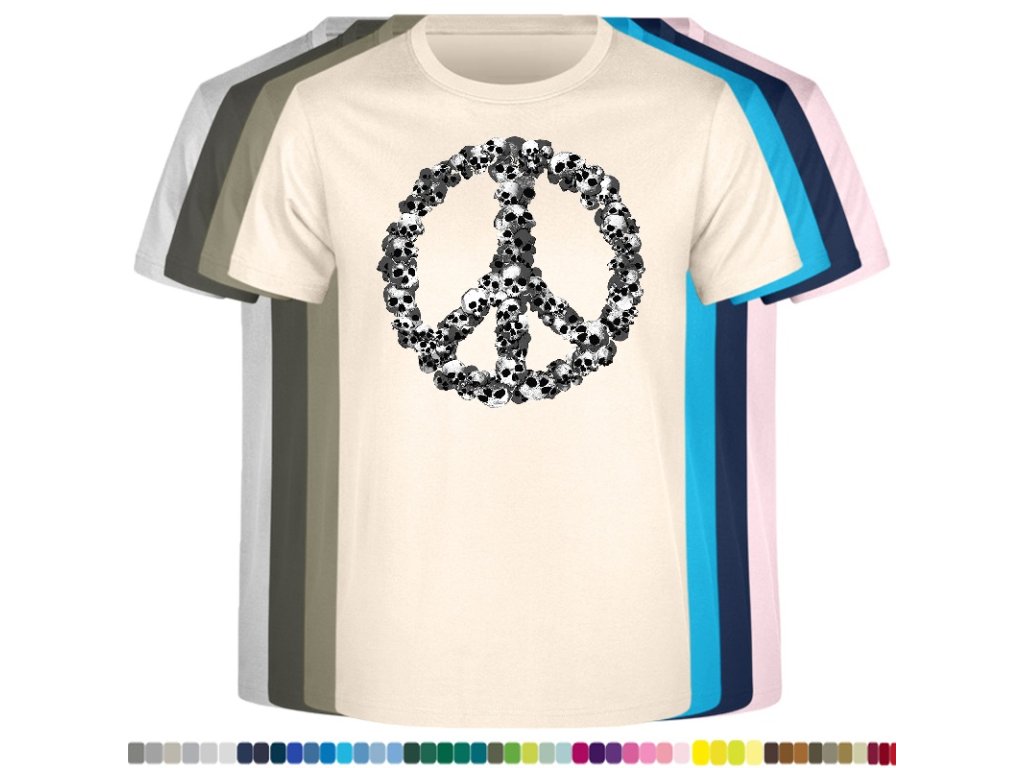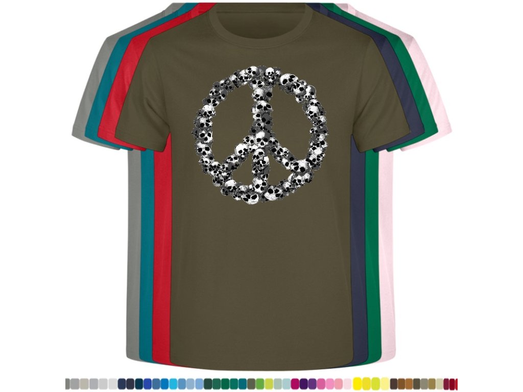 Levné bavlněné tričko s digitálním potiskem Hipie lebky