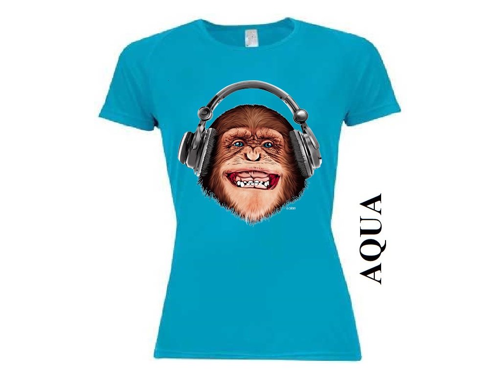 DÁMSKÉ TRIČKO S POTISKEM OPICE SE SLUCHÁTKY